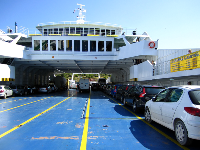 Dojeżdżamy do Brestovej i ustawiamy się w kolejce. Zbieram ze stojaka foldery o wyspie (głównie interesują nas te o campingach) i spokojnie czekam na prom: