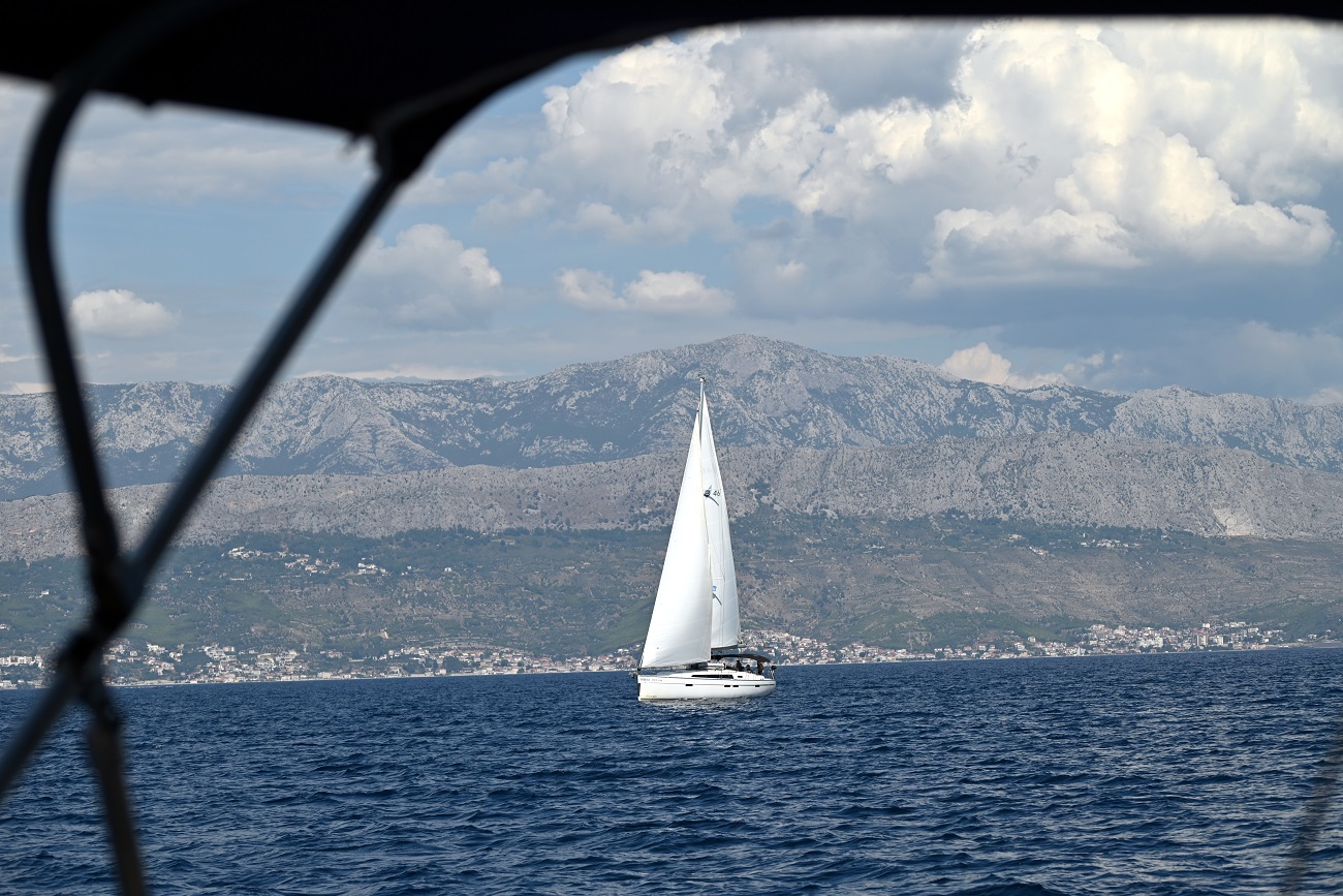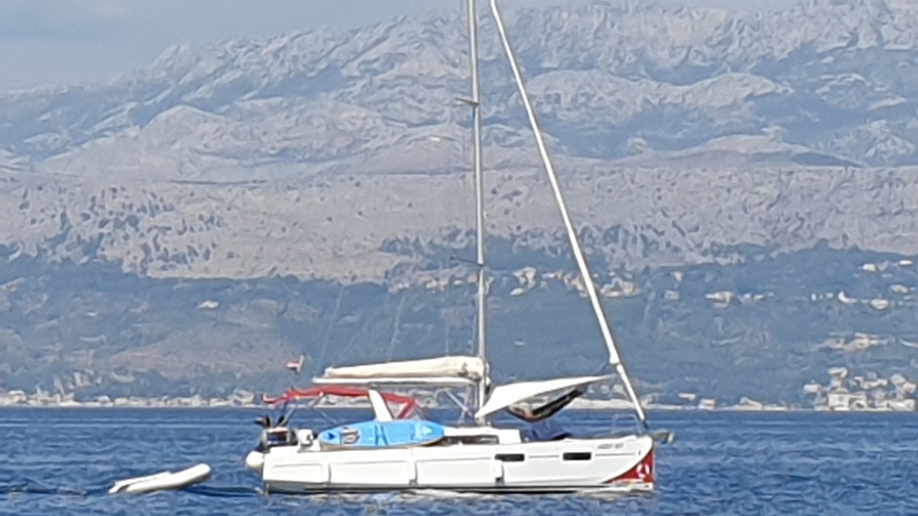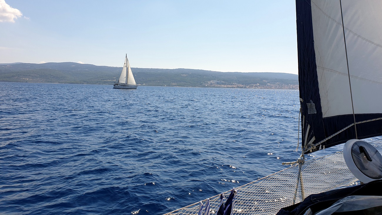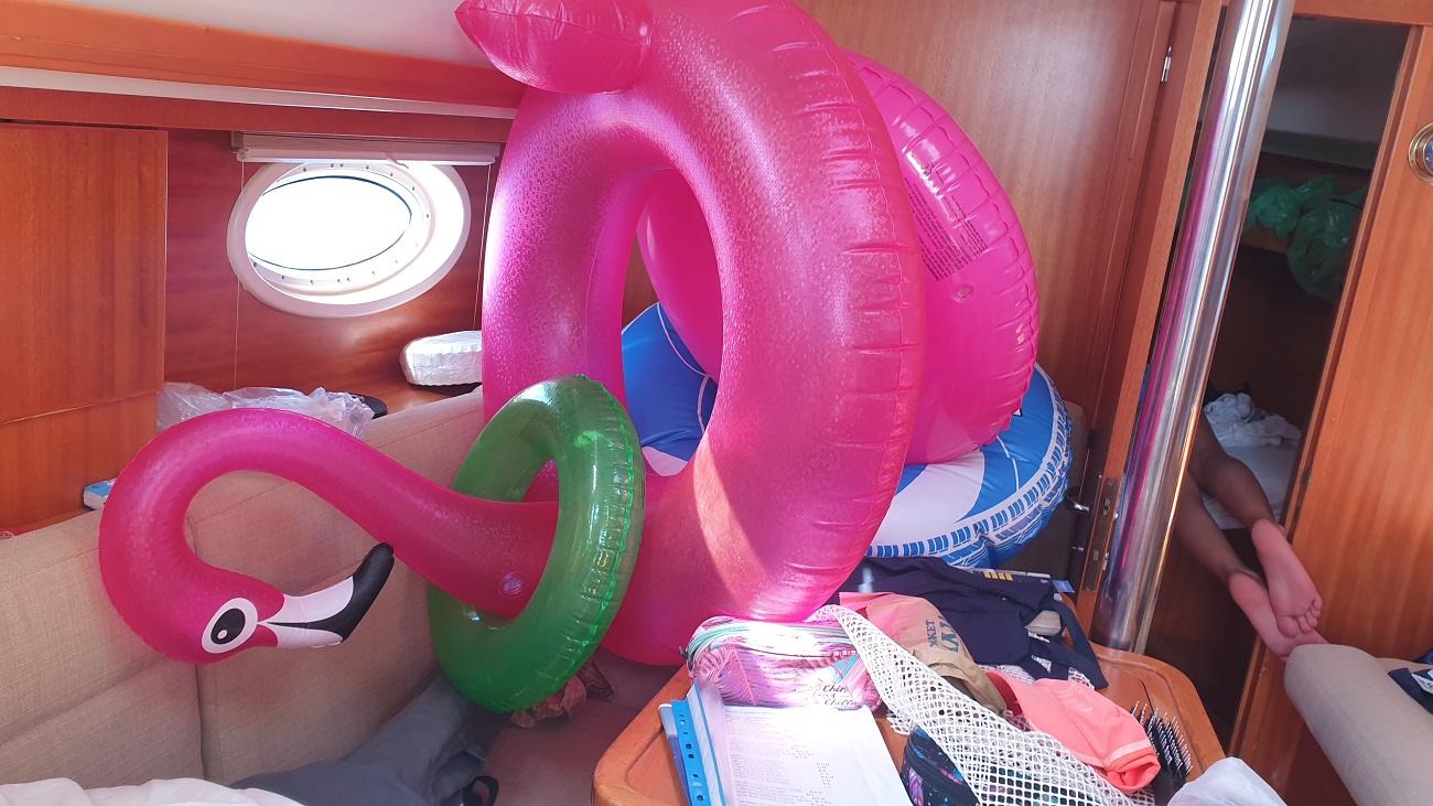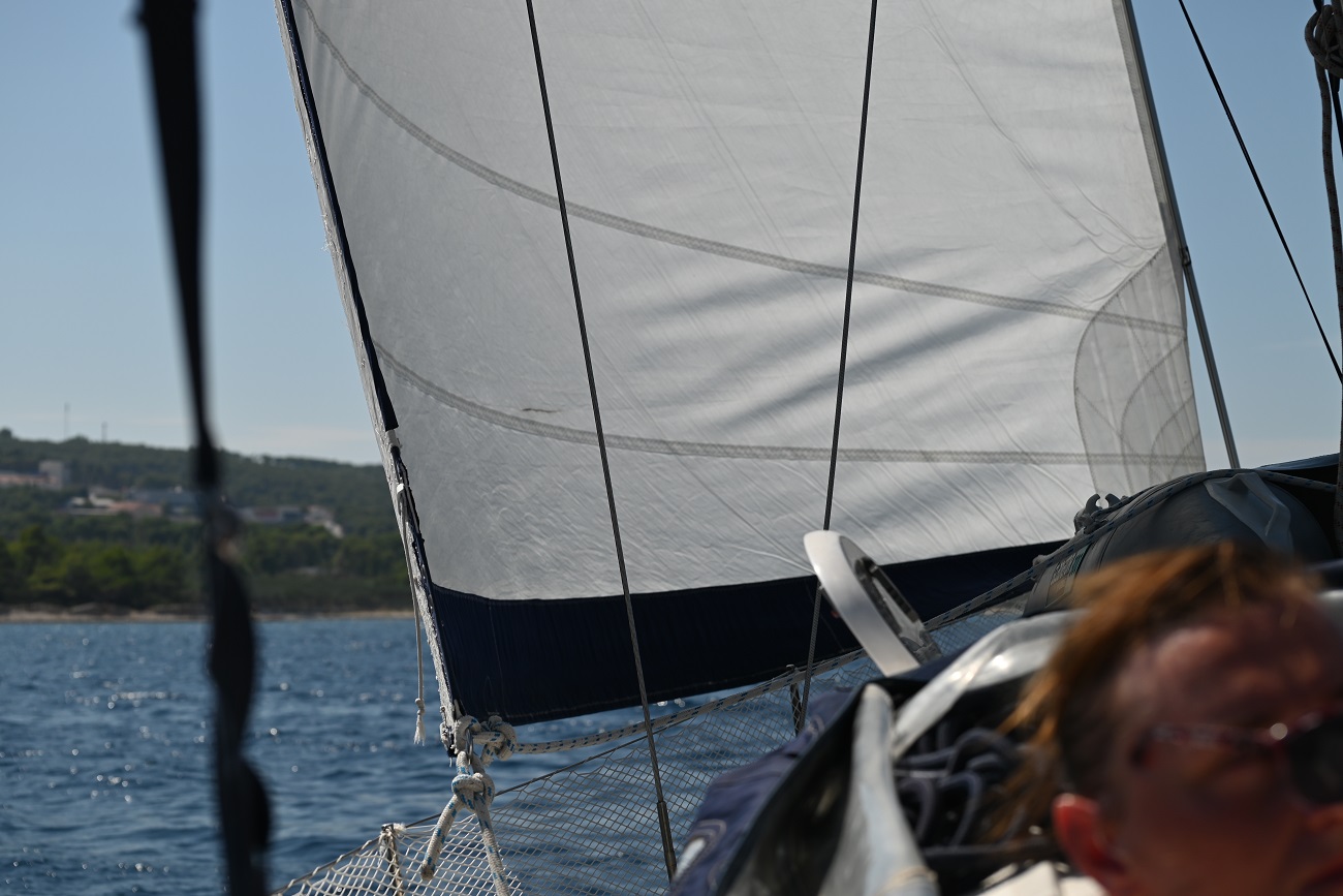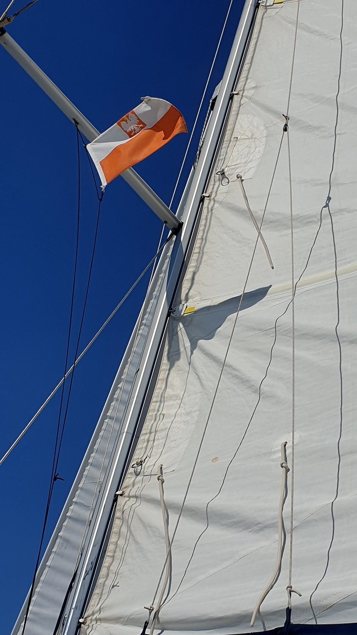 Za to ci na pewno nie używają żagli skoro w czasie płynięcia fok mają obwiązany hamakiem i żaglem przeciwsłonecznym.