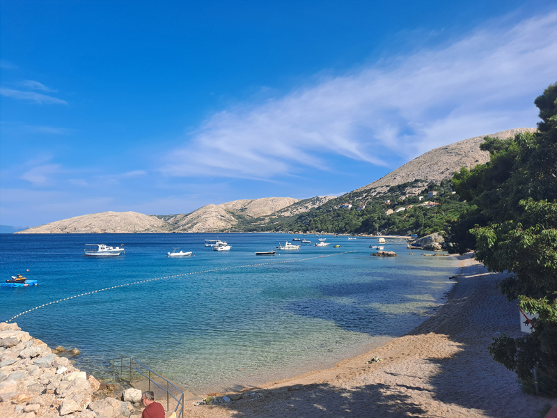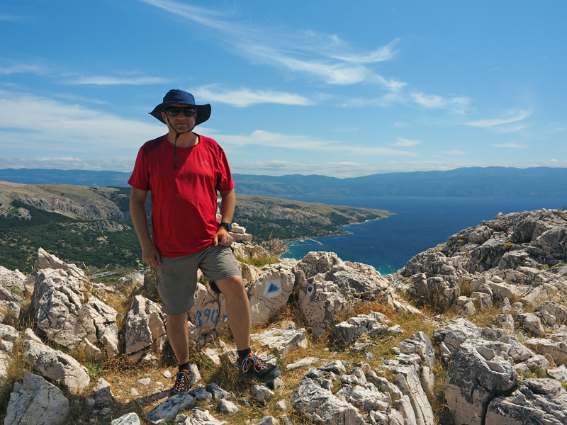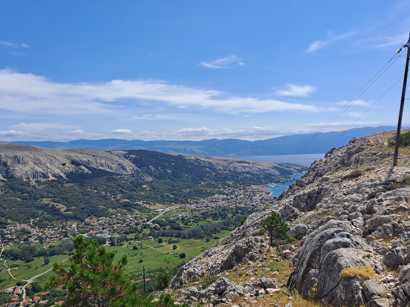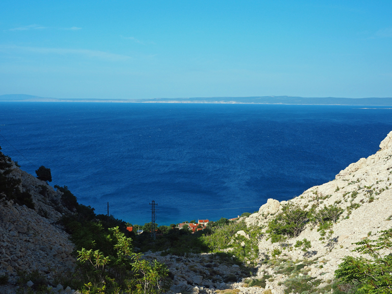 Cofam się po swoich śladach do głównej drogi. Ostatni rzut oka na linię wybrzeża Starej Baški.