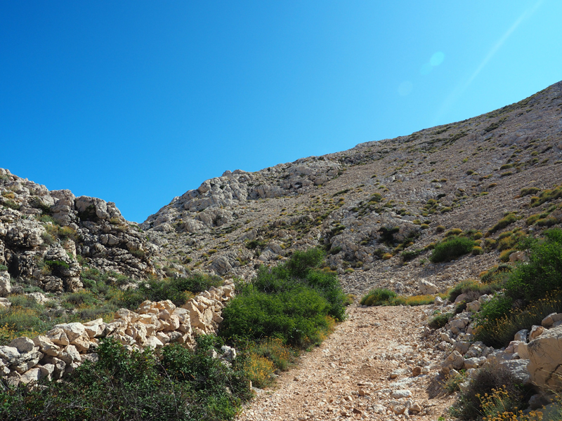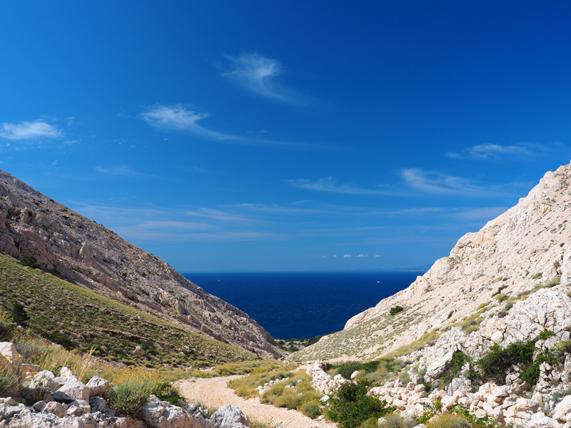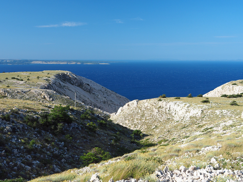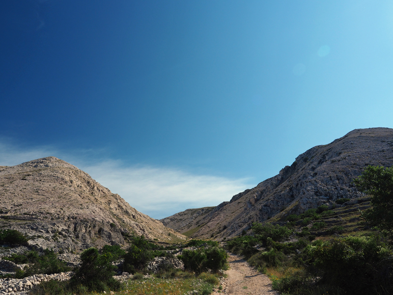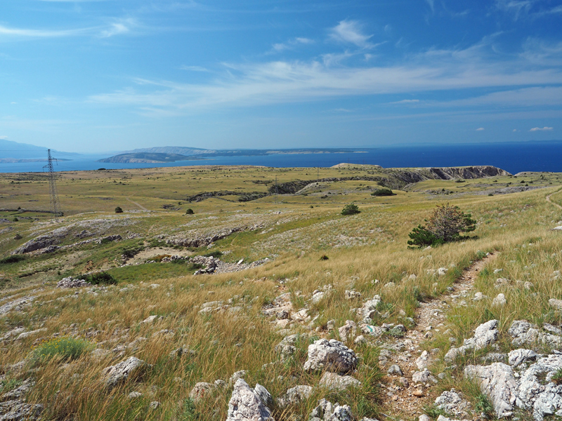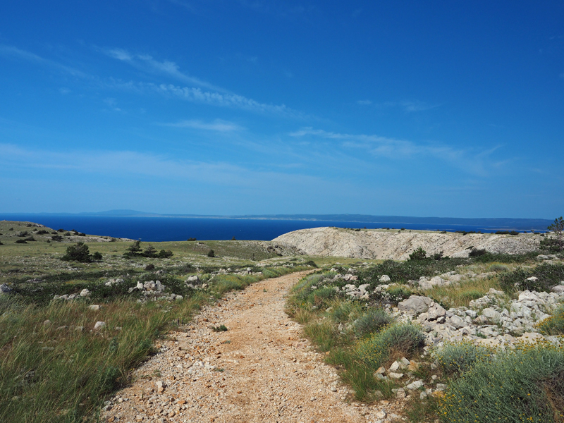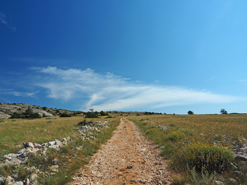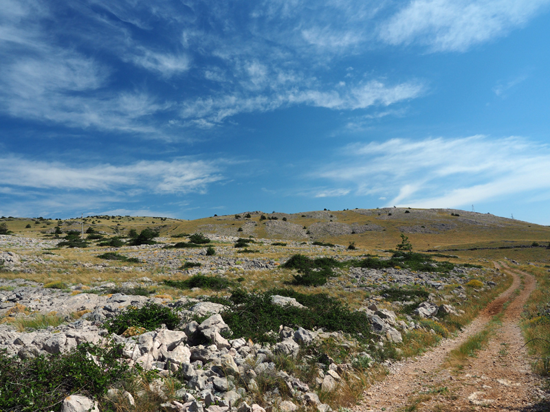 Niebawem opuszczam asfalt i dalej podążam szutrową drogą oddalając się od Starej Baški i morza.