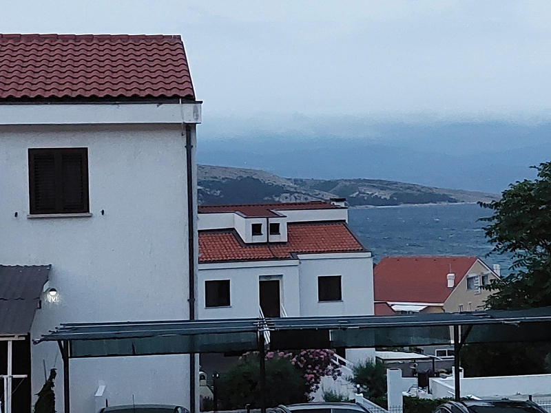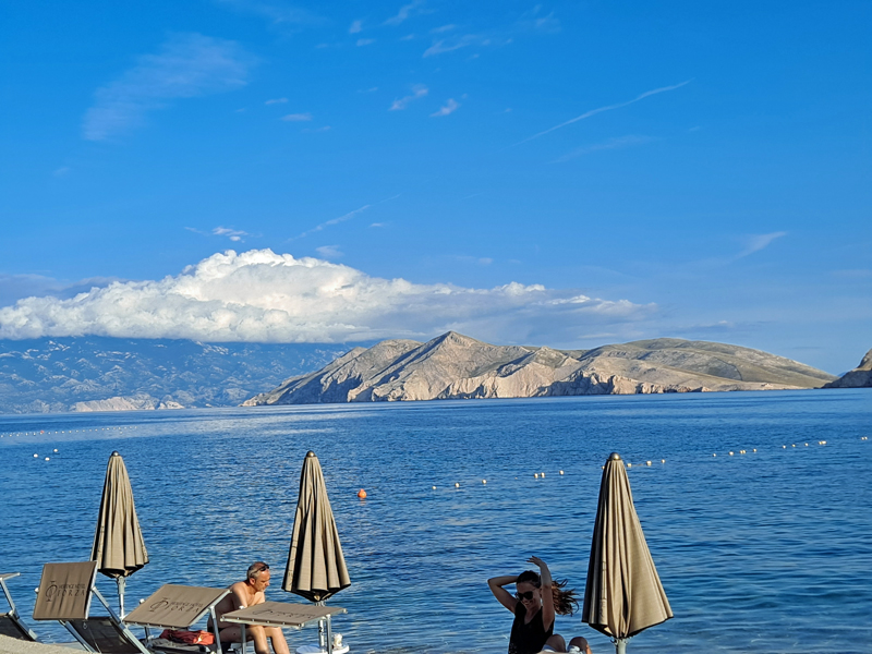 Gdy zbliżamy się do mostu ma wyspę Krk dzwoni zaniepokojona właścicielka kwatery. Jest Słowenką i w czasie korespondencji wspominałem, że będziemy chcieli po drodze wstąpić do Bledu. Okazuje się, że nad Bledem po południu przeszło mocne gradobicie. Pyta czy tam byliśmy, czy u nas wszystko w porządku. Cieszy się, że nie ucierpieliśmy i że niebawem się zobaczymy.
