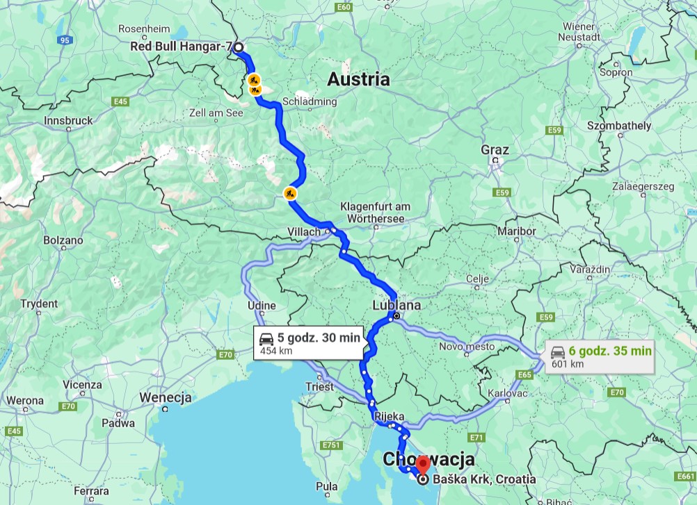 Hangaru-7, siedziby zespołu akrobacji lotniczych Flying Bulls. Startujemy w jedynym słusznym kierunku czyli na południe