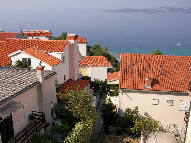 Najpierw zaczęliśmy szukać na własną rękę - niepowodzenie. Potem udaliśmy się do lokalnego biura podróży, czy też agencji turystycznej. Zaproponowano nam apartament 3 osobowy za 57 EUR. Byliśmy trochę w szoku. Zrezygnowani mieliśmy zamiar pojechac dalej szukac nocelgu w innej miejscowości. Trochę bylismy zdziwieni, ale na żadnym parkingu nie stał nikt z tabliczkami "apartman"... Jednak tuż przed wyjazdem z Baška Voda, żona postanowiła jeszcze raz czegoś poszukać. I bingo - znalazła apartament za 30 EUR. Był on jednak delikatnie mówiąc obskurny i nie miał klimatyzacji. Po nocy spedzonej w Karlovacu i zmęczeni szukaniem noclegu chcieliśmy mieć jednak ten luksus na wyposażeniu pokoju. Żona poszła dalej a ja cierpliwie czekałem w samochodzie na skraju drogi. Po chwili biegnie do mnie z uśmiechem od ucha do ucha i oznajmia mi że znalazła apartament swoich marzeń - nowy, czysty, z piekną łazienka, TV-SAT, klimą, balkonem z widokiem na Adriatyk. Cena 40 EUR. Szybka decyzja - bierzemy. Dodatkowo wykupiliśmy jeszcze śniadania w cenie 4 EUR za osobę, bo jak się okazało apartament był tak naprawde dużym pokojem. Ale my i tak nie nastawialiśmy się na gotowanie we własnym zakresie tak więc nie przeszkadzało nam to wcale. A dom był piekny, ze stromym zejściem do morza, które zabierało około 1,5 minuty. I co jest równie ważne, obok domu był dogodny parking z bezpośrednim wjazdem na ulicę.