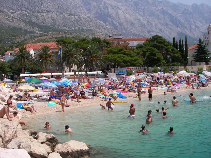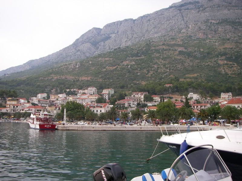 Około 12 dotarliśmy do Baška-Voda - wspólnie uznaliśmy, że to będzie dobre miejsce na pierwszą część naszych wakacji, choć początkowo planowaliśmy wyspę Hvar obrac jako cel. Jenak po lekturze forum doszliśmy do wniosku, że wyjazd w ciemno na wspę jest ryzykowny. Dość prędko się o tym przekonaliśmy, gdyż około 3 godzin szukaliśmy noclegu nawet na stałym Lądzie.