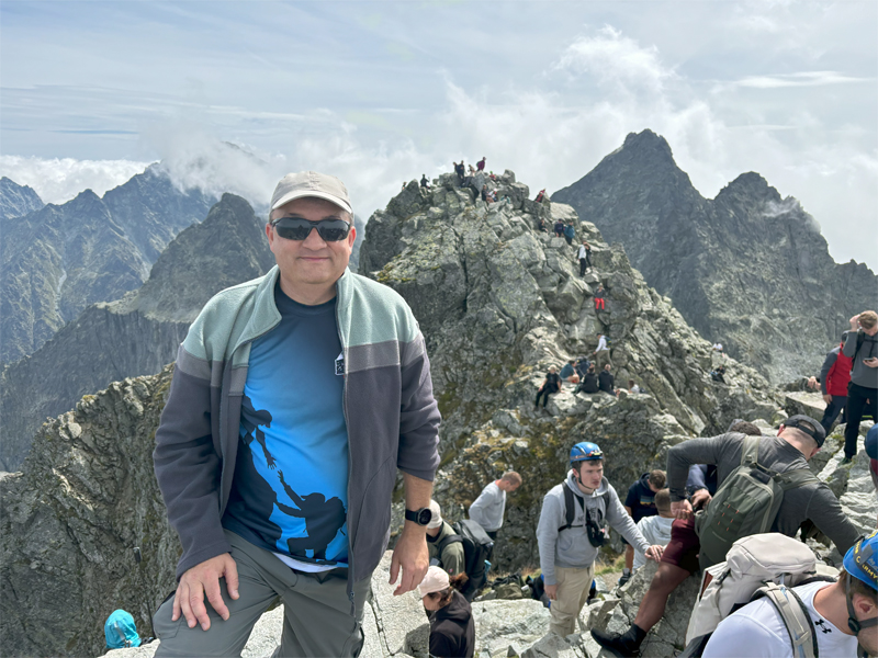 Przy tej tablicy starszy Słowak prosi i zrobienie zdjęcia. Chce się zrewanżować robiąc nam fotkę. W sumie to nie robiliśmy tu wspólnego zdjęcia więc ochoczo na to przystajemy.