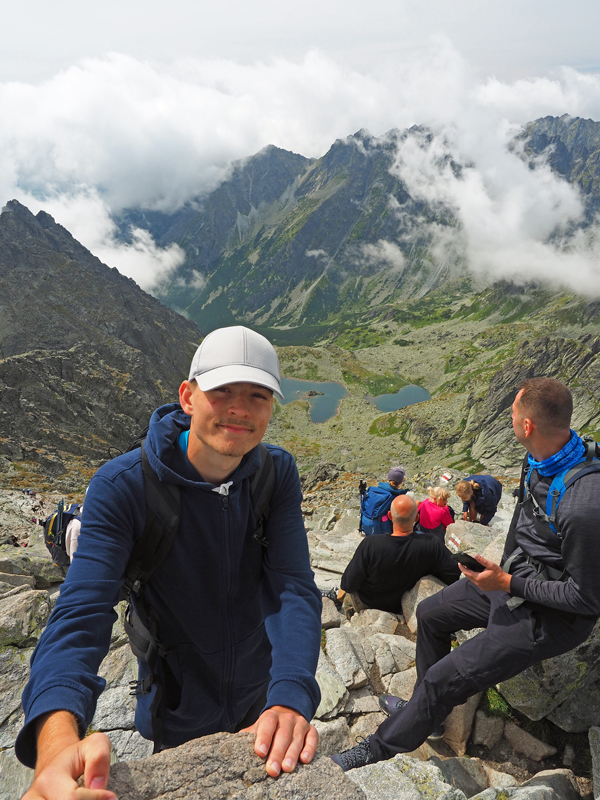 Pogoda nam dopisała. Zgodnie prognozami po porannych mgłach były chmury na przemian za słońcem. Akurat na szczycie mieliśmy okno widokowe