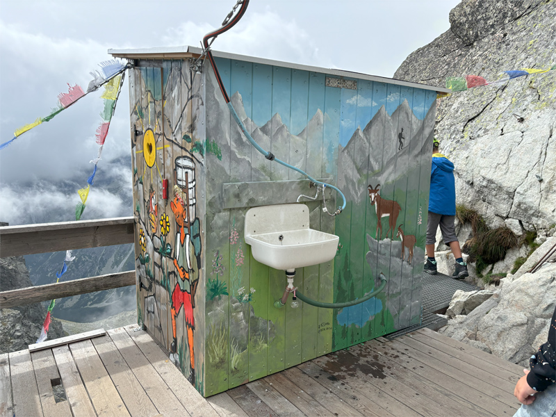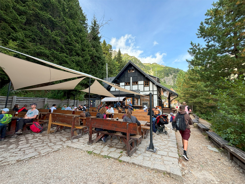 Popełniamy taktyczny błąd. Po skorzystaniu z toalety stoimy bowiem jeszcze w kolejce w schronisku po napoje. Mogłem tam podejść w międzyczasie a Mateusz trzymałby kolejkę do WC. Kolejne piętnaście minut w plecy