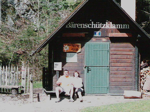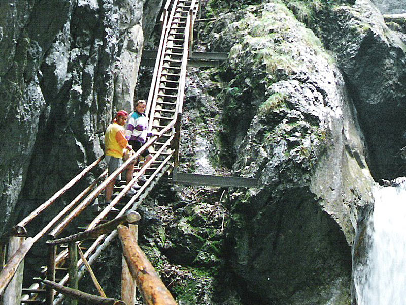 Pierwszym punktem na naszej mapie jest miejsce oznaczone numerem 2 – Barenschutzklamm (u mnie bez niemieckich znaków). My wjechaliśmy do miejscowości Mixnitz i stamtąd udaliśmy się na ten niesamowity i niespotykany w Polsce szlak turystyczny, prowadzący stromo pod górę drabinami wokół wodospadu.
