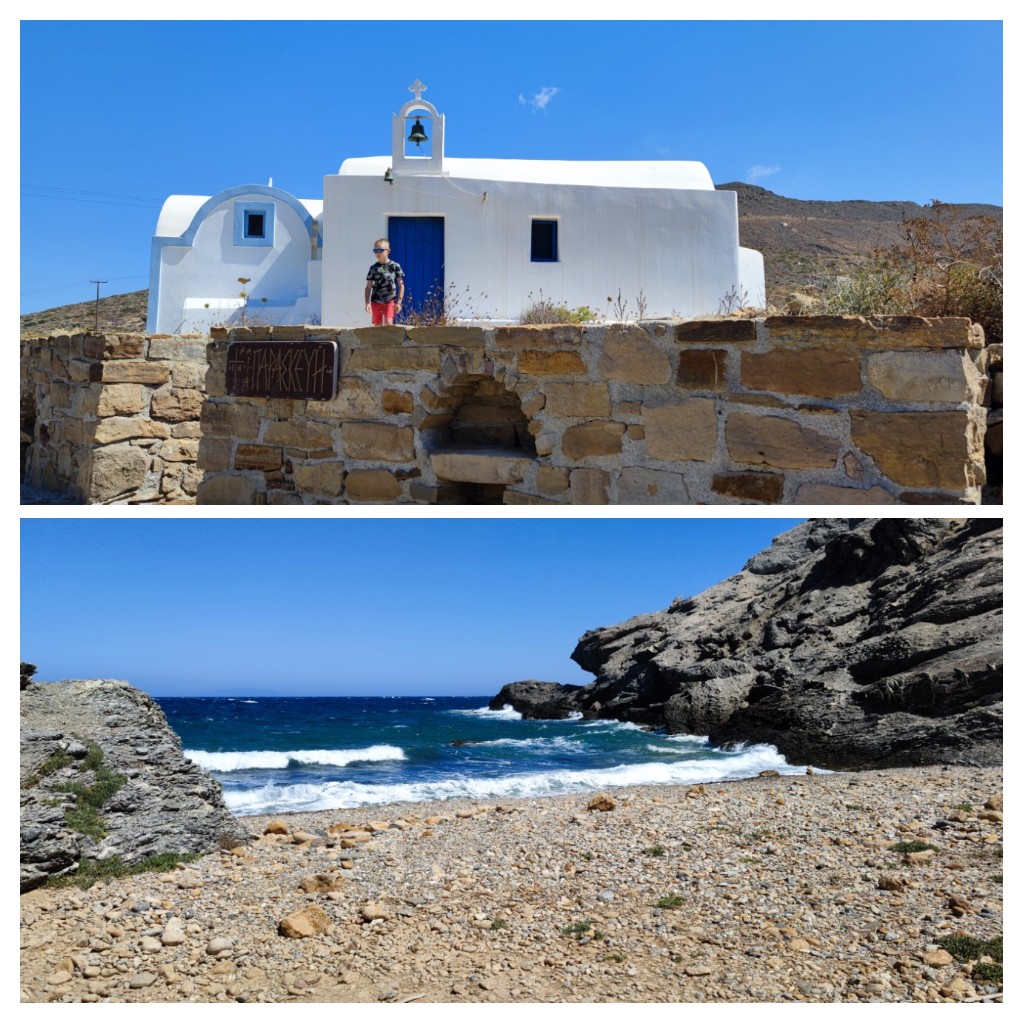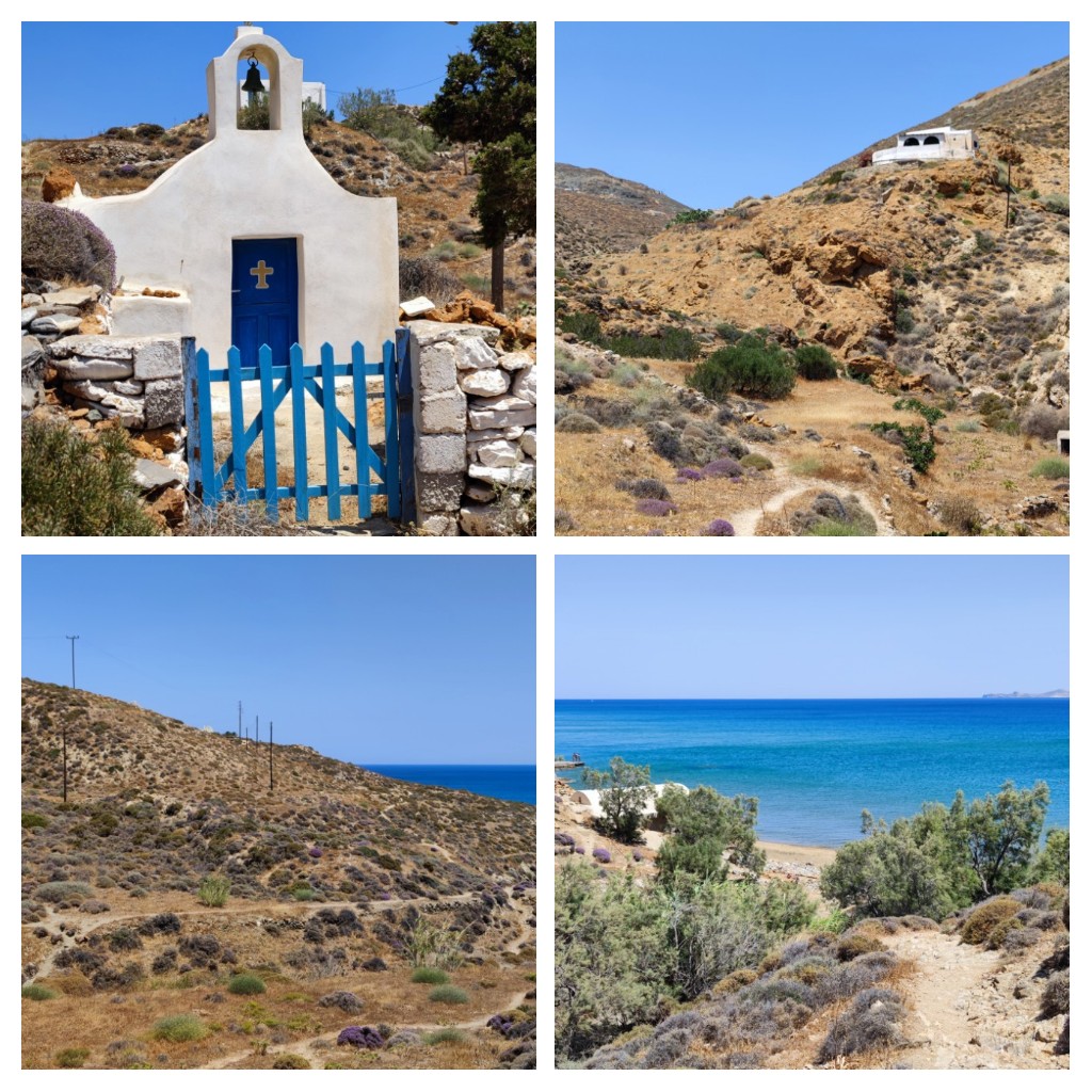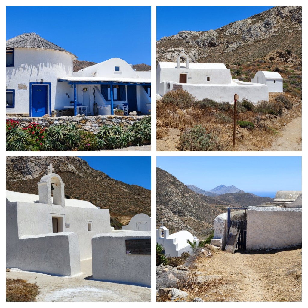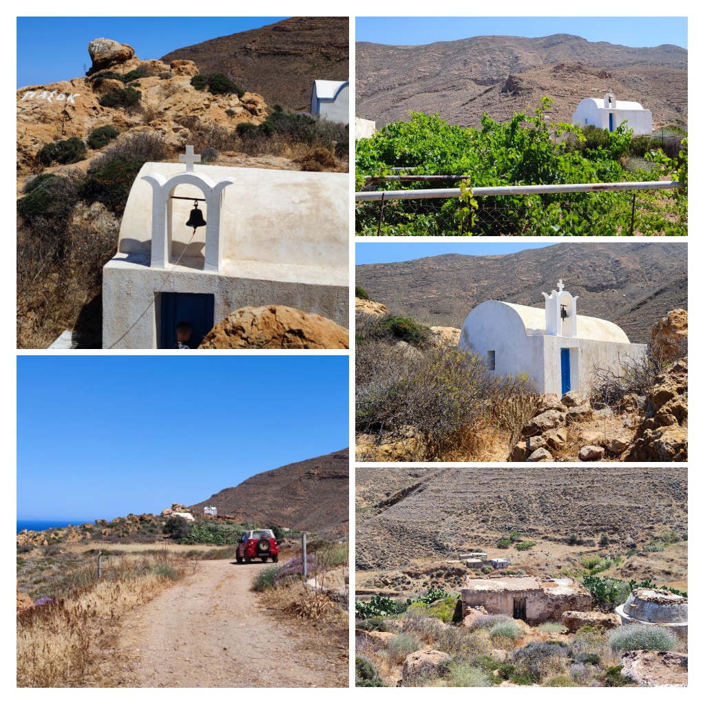 motywuje nas do dalszej podróży. Finalnym celem tej części wyspy jest Lakkous. Raz - ze względu na tutejeza urocze Aghios Georghios i Aghios Vasilios, dwa - jest tu zaskakująco zielono. A taką kropką nad i były...małe winnice. Czyżby dawna tradycja uprawy winogron na Anafi powracała?