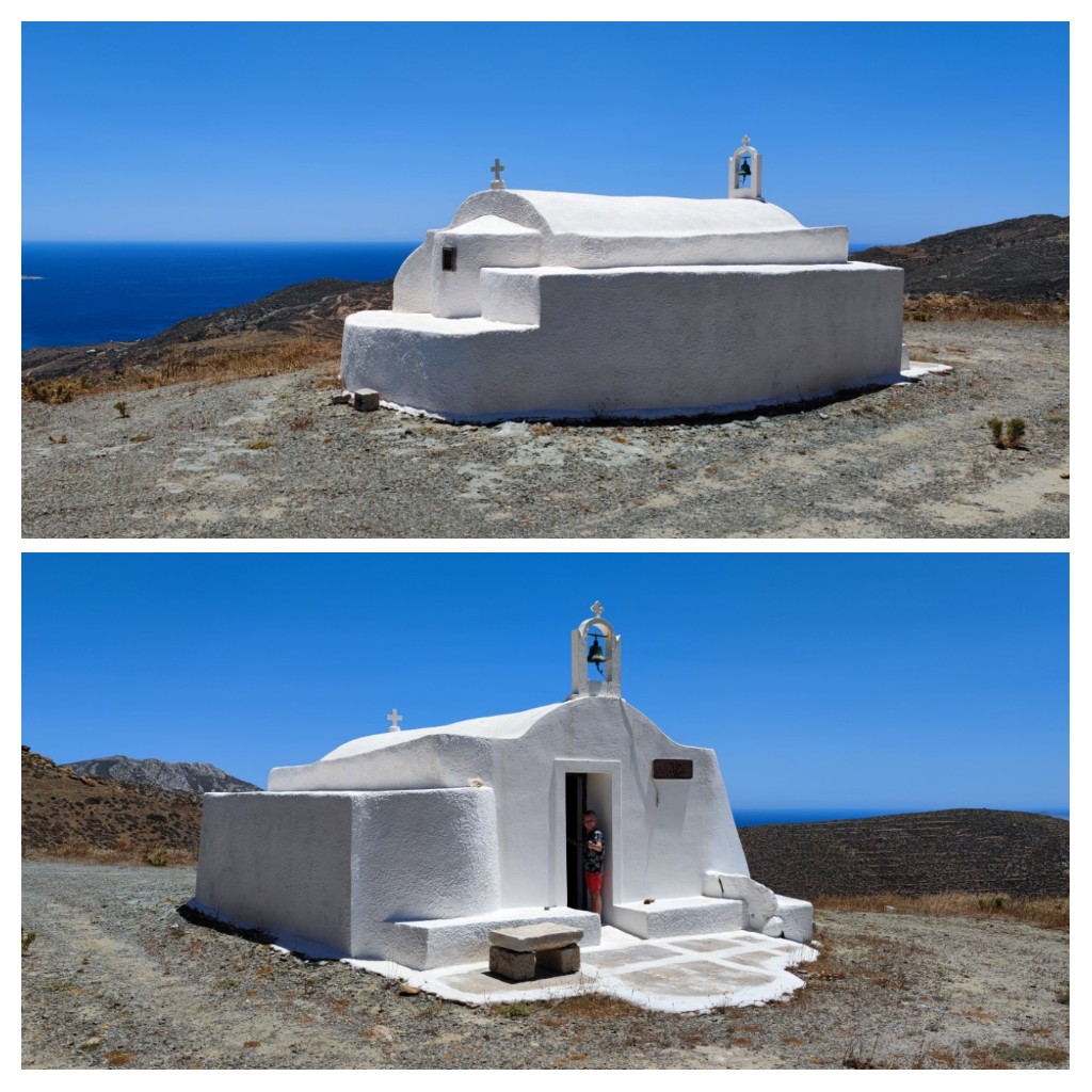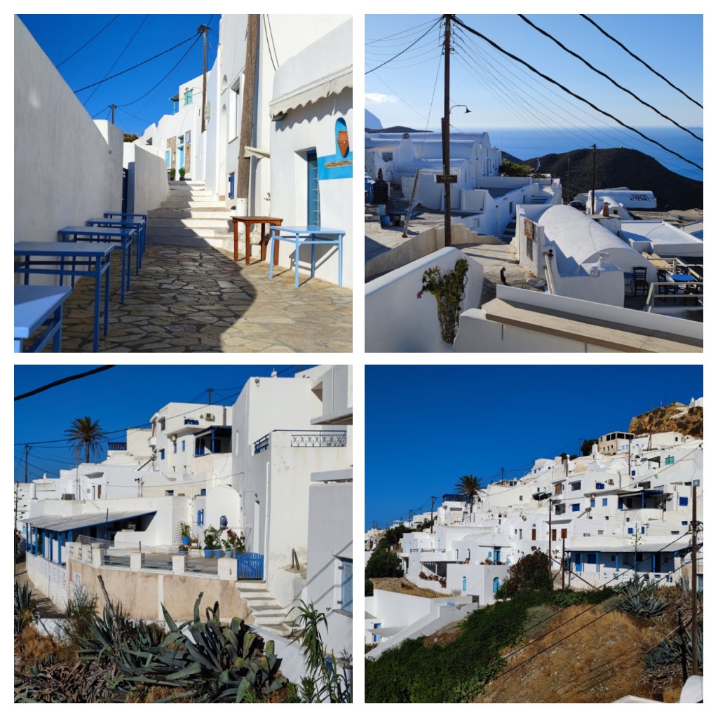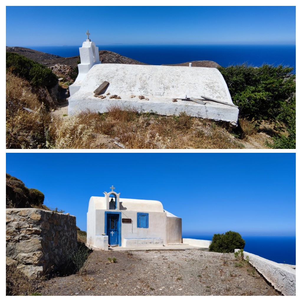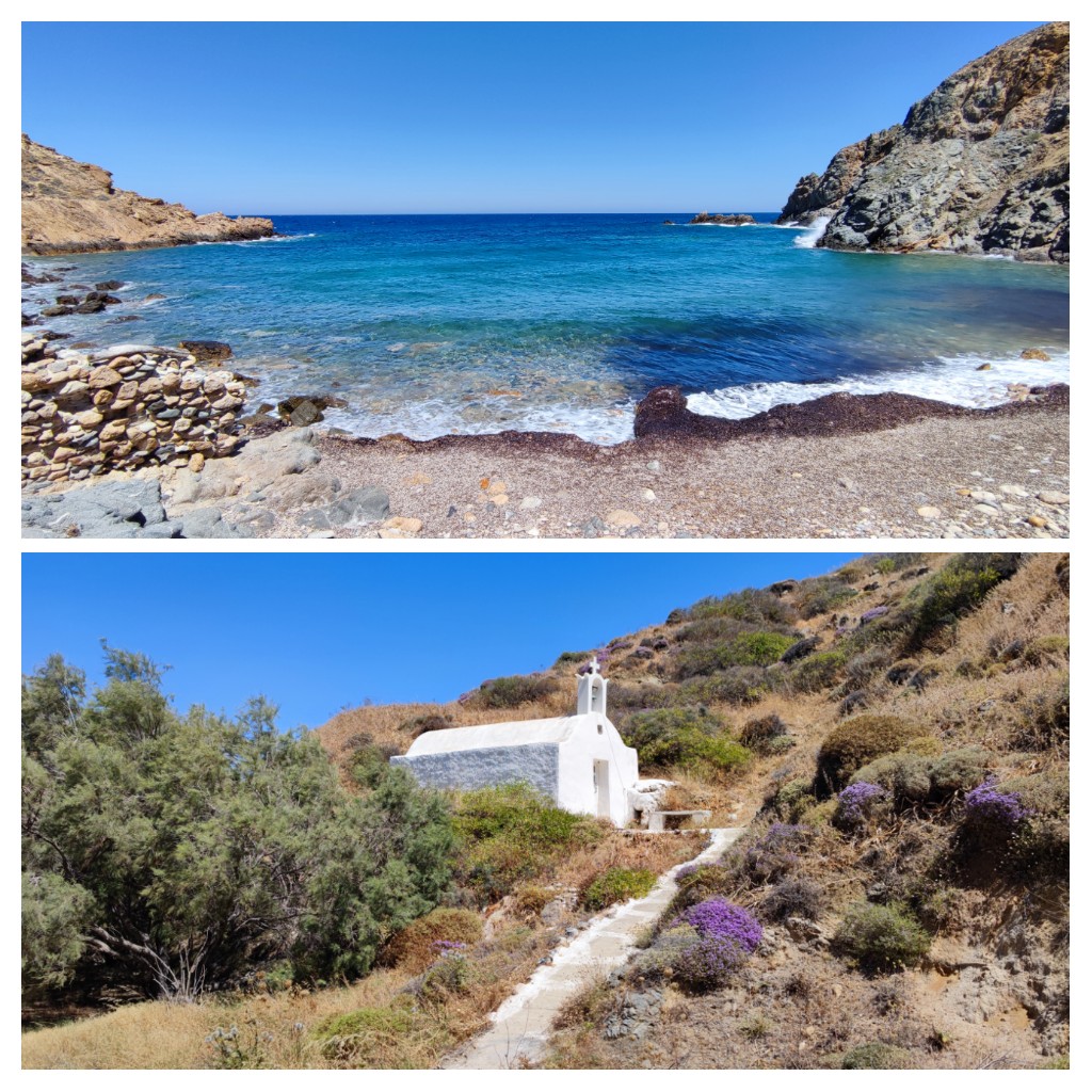 motywuje nas do dalszej podróży. Finalnym celem tej części wyspy jest Lakkous. Raz - ze względu na tutejeza urocze Aghios Georghios i Aghios Vasilios, dwa - jest tu zaskakująco zielono. A taką kropką nad i były...małe winnice. Czyżby dawna tradycja uprawy winogron na Anafi powracała?