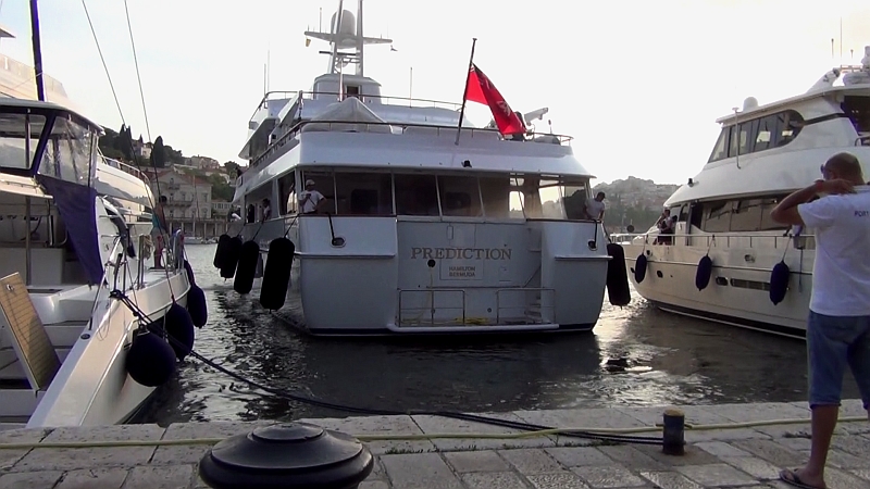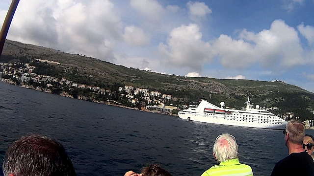 Podczas trwania naszego posiłku nagle podniósł się jakiś rejwach. Ludzie klaskali i gwizdali. Zaczęliśmy się rozglądać i okazało się, że to spora grupa elegancko ubranych ludzi przyszła do portu i skierowała się na statek, stojący przy nabrzeżu. Gdy weszli na statek to koło nas przeszła młoda para, która spacerkiem szła w kierunku tego statku.
