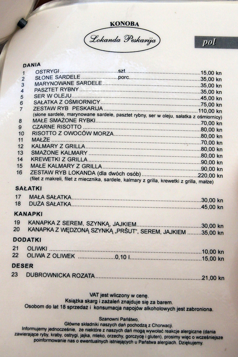 Nasz pobyt w konobie Lokanda Peskarija trwał 1 godzinę.