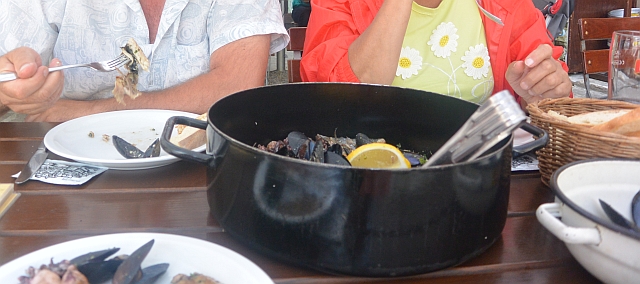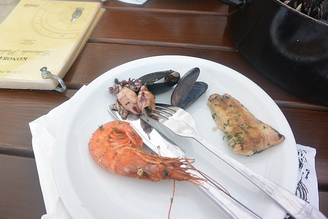 Zamówiliśmy kociołek owoców morza o nazwie Riblja plata Lokanda i bardzo nam to smakowało. Dlatego w tym roku zdecydowaliśmy się na to samo miejsce i to samo danie. Riblja plata Lokanda to zestaw składający się z filetów z makreli, filetów z miecznika, sardeli, kalmarów z grilla, krewetek z grila i małż.