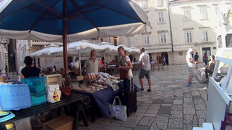 Przy bramie, która prowadzi do portu stoją stragany z pamiątkami. Kupiliśmy tam pamiątkowe magnesy na lodówkę (po 20 kun).