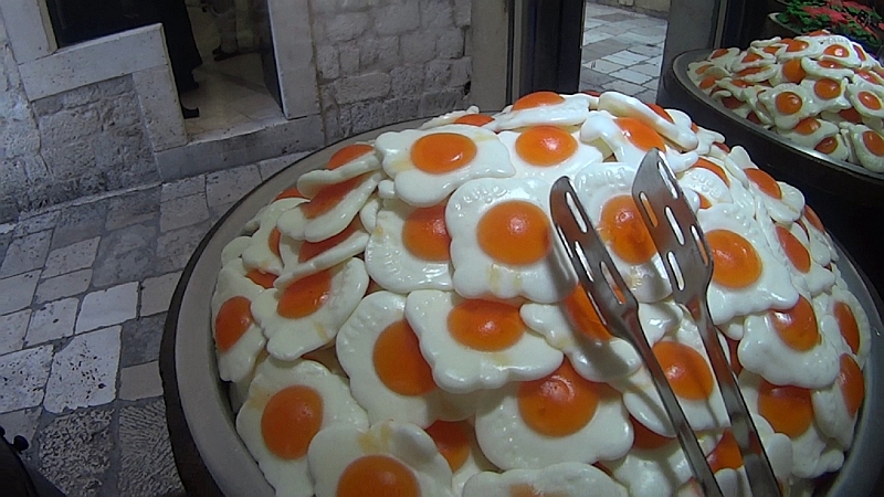 Moją uwagę przykuły żelki, które wyglądały jak „jajo na oko”. Z ciekawości weszliśmy do środka. Jeju, czego tam nie było, żelki różne-różniste. Zobaczcie sami.