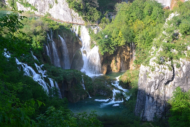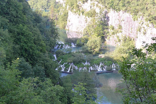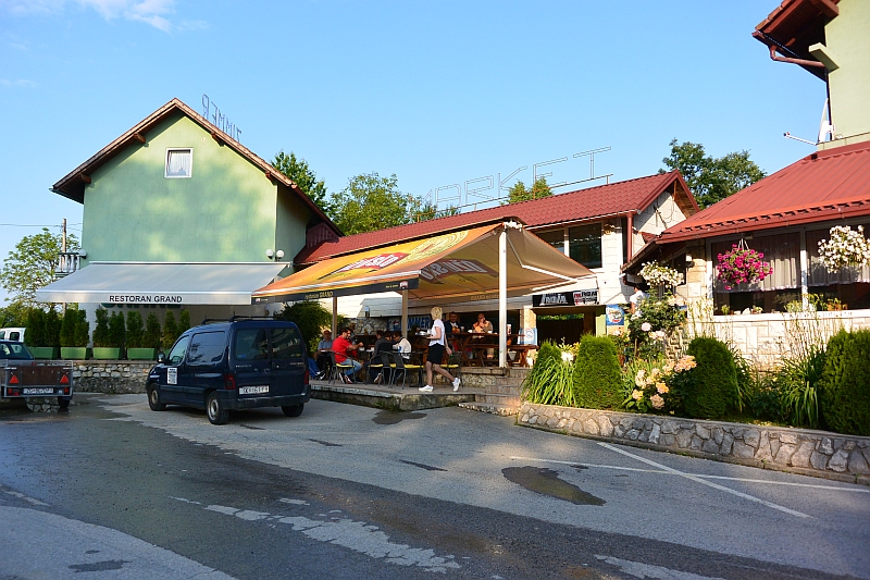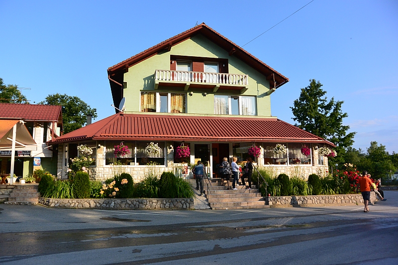 Nadszedł wreszcie poniedziałek 6 czerwca 2016 roku - dzień naszego wyjazdu. Jedziemy sami, więc nam trochę smuto, bo w towarzystwie zawsze weselej, a nie wiadomo na kogo się trafi na wycieczce. Ale już na miejscu zbiórki, która miała miejsce o godzinie 17-tej, mojego męża zaczepia jakaś kobieta słowami „No nie mów Waldek, że jedziesz na tę samą wycieczkę co ja”. No i już mamy znajomą na wyjazd. Okazało się, że ona też jedzie bez koleżanki, która w ostatniej chwili musiała zrezygnować z wyjazdu (to chyba jakaś epidemia). Jedyny ból jest taki, że ona ma miejsce w autokarze zaraz za kierowcą, a my kilka rzędów za nią po stronie pilota, więc jesteśmy od siebie trochę oddaleni. Nie jest to sytuacja komfortowa do zacieśniania więzów przyjaźni w podróży. No ale nic to. Punkt 17-ta ruszamy. Po drodze zbieramy pozostałych wczasowiczów. W międzyczasie rozmawiamy z pilotką i uzgadniamy, że w związku z tym, iż miejsc w autokarze jest o 10 więcej, niż uczestników wyjazdu i cały tył autokaru jest wolny, to my w trójkę się tam przesiądziemy. To było super posunięcie. Ja zajęłam ostatni rząd (pięć miejsc), mąż usiadł przede mną po lewej stronie, a jego znajoma (a teraz to już także moja) przede mną po prawej stronie. Od razu zawiązaliśmy znajomość z dziewczynami, które miały miejsca z tyłu autokaru (również się poprzesiadały na wolne miejsca). Mieliśmy teraz super miejscówki. Szczególnie dla mnie była to sytuacja komfortowa, bo miałam spore pole manewru podczas kręcenia ujęć z podróży. Nikomu nie przeszkadzałam przenosząc się z kamerą z jednej strony autokaru na drugą. Podróż upływała w super atmosferze. Trasa tradycyjnie przez Czechy, Austrię, Słowenię i Chorwację. Nie wiem o której godzinie wjechaliśmy do Chorwacji, bo spałam, ale o 6 rano jedliśmy już śniadanie w przydrożnej restauracji Grand w miejscowości Lapovac niedaleko Slunj.