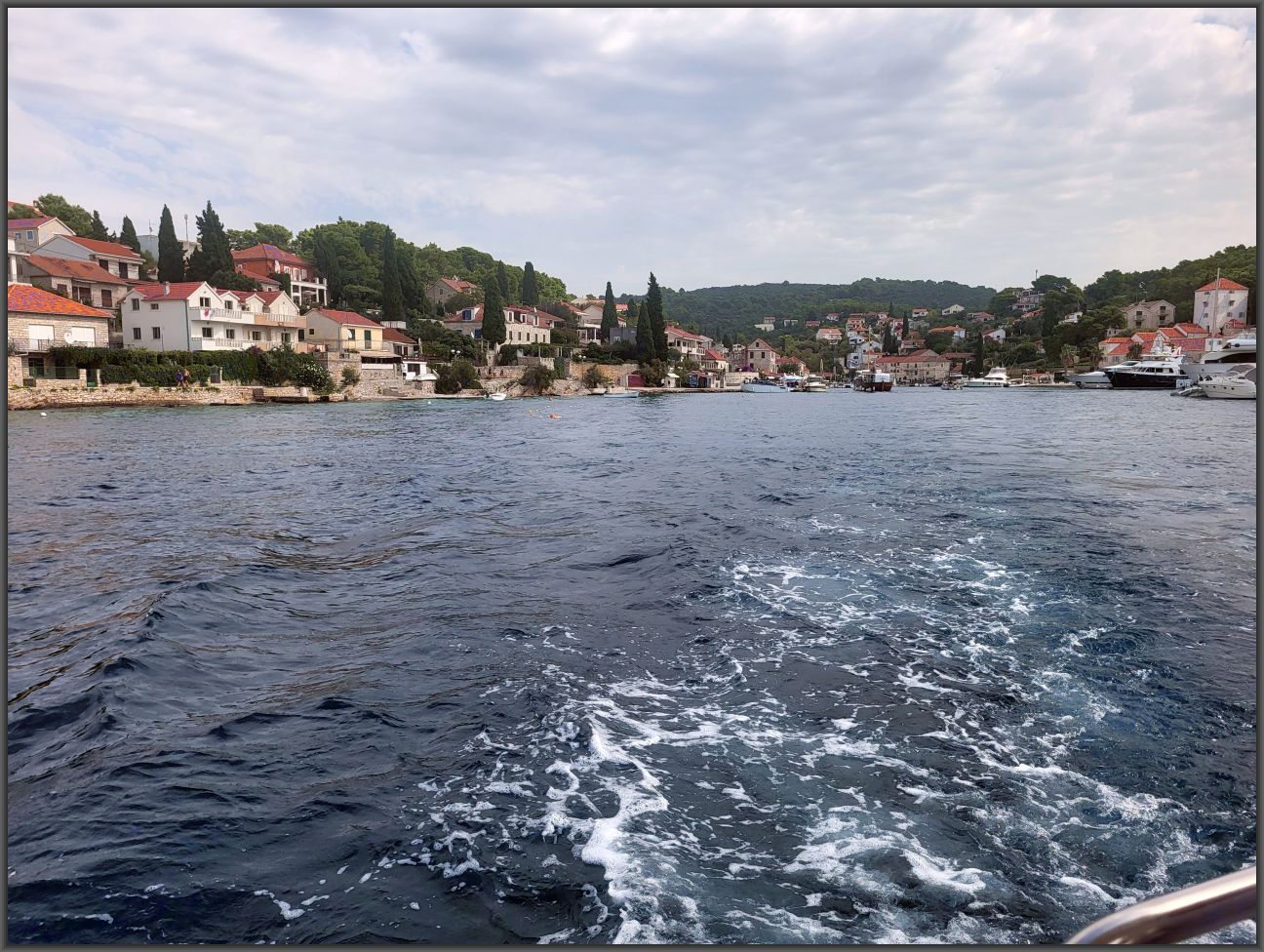Ta wysepka najbliżej lądu to Otok Krapanj a na wprost niej na lądzie widać zabudowania Brodaricy.