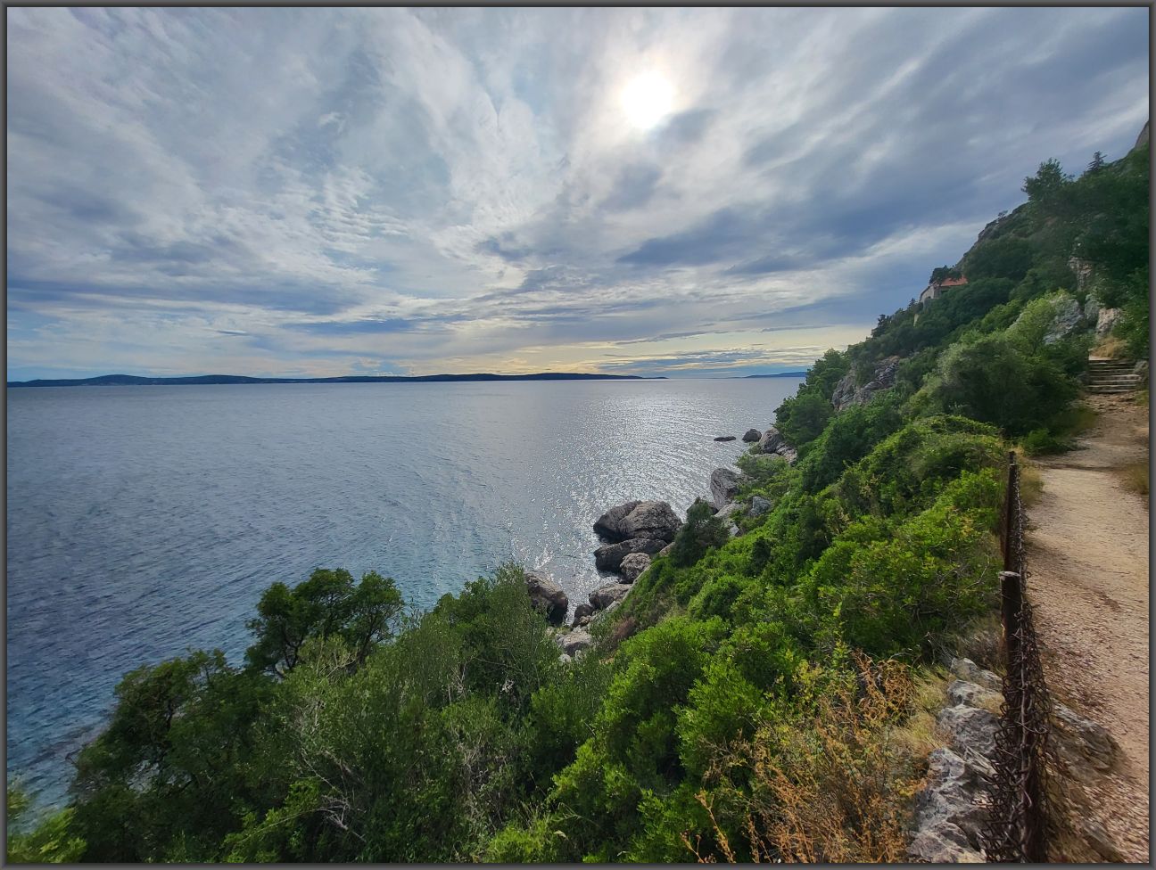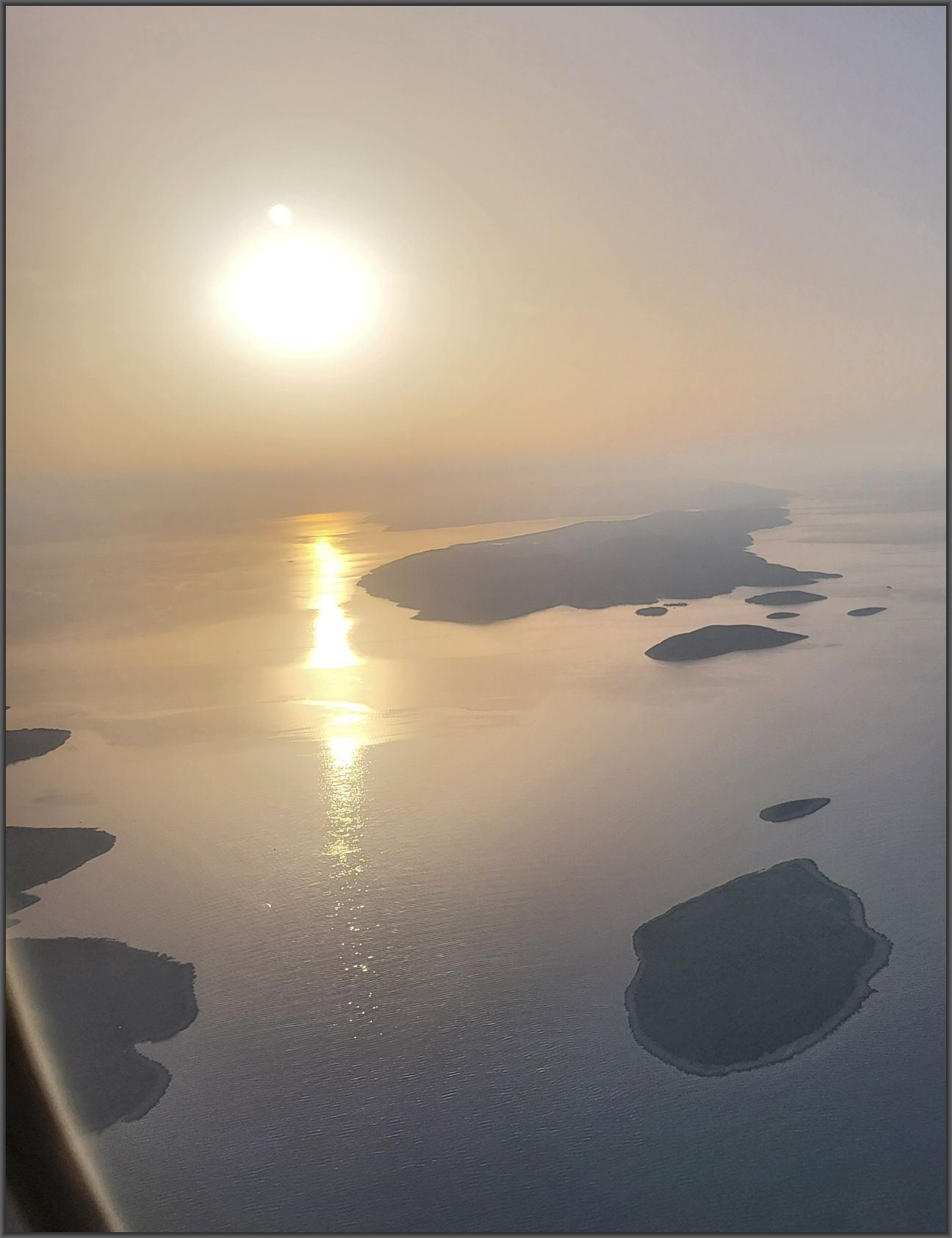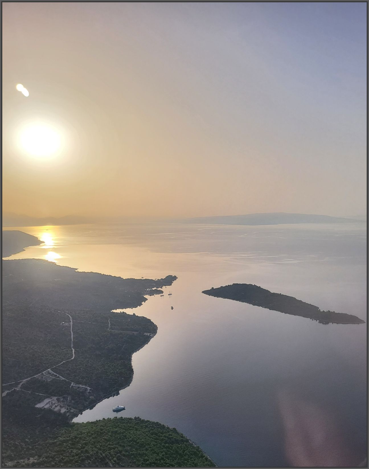 Ta wielka wyspa, wzdłuż której słońce znaczy swój śla, to Otok Šolta, a ta mniejsza to Otočić Orud.