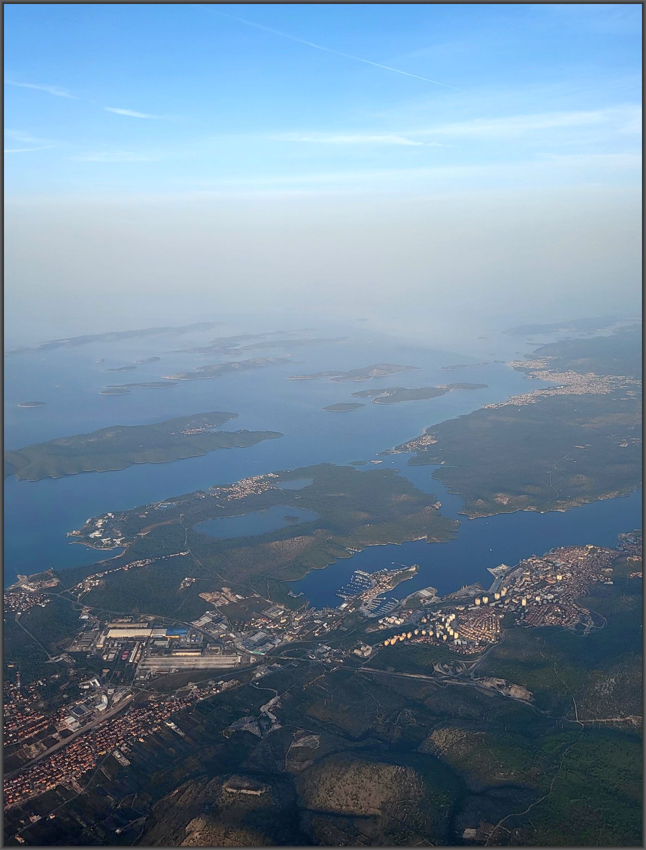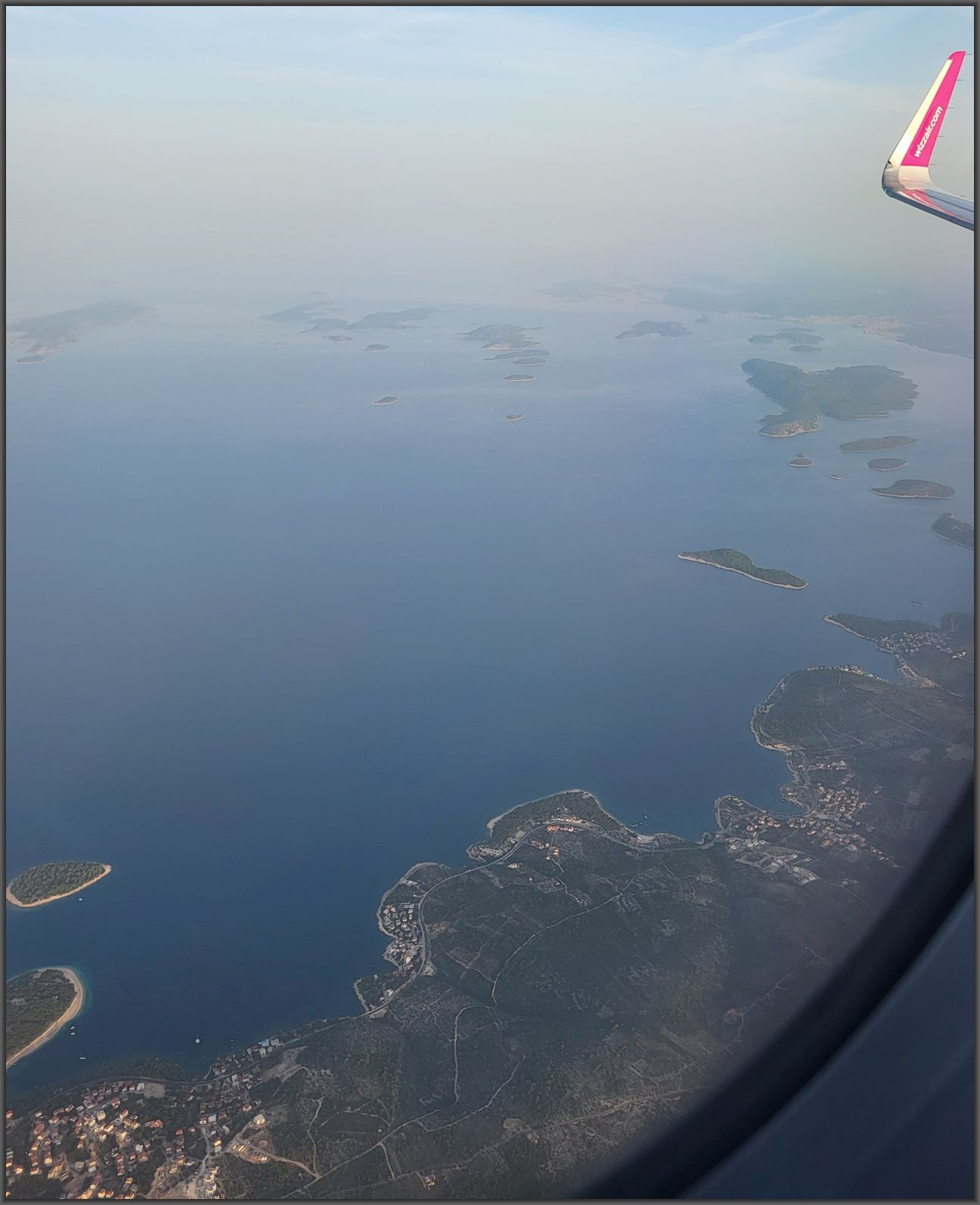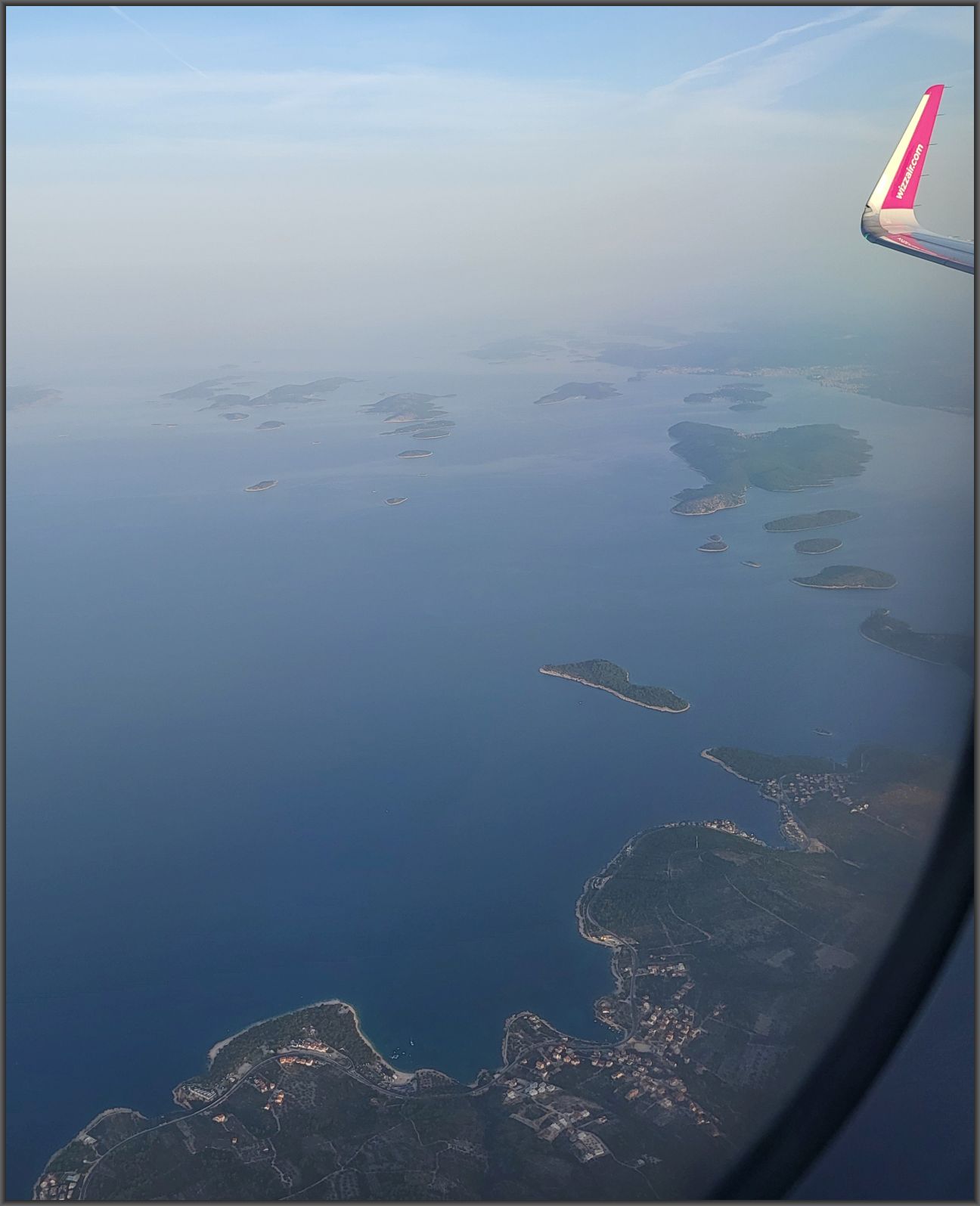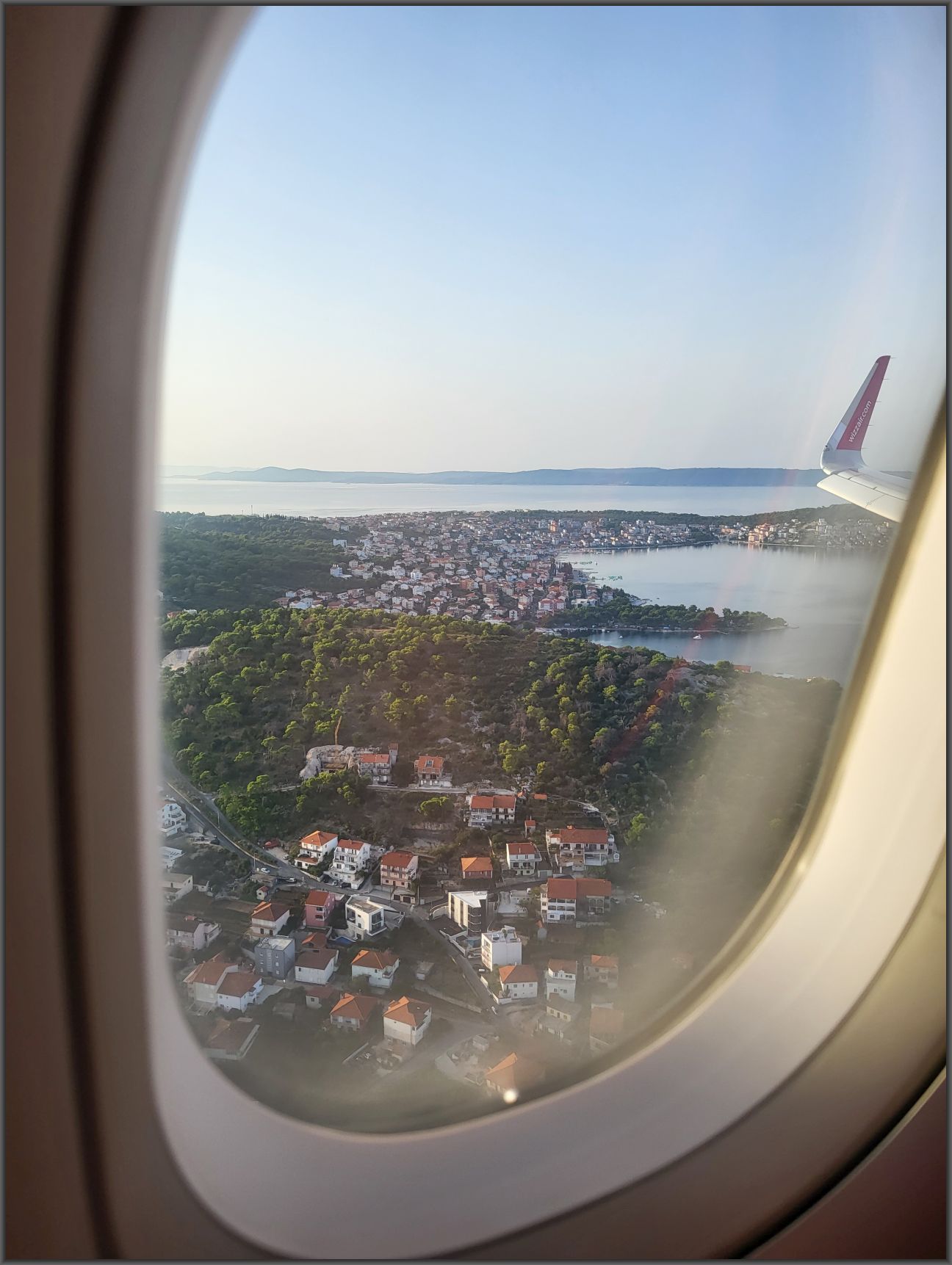 Teraz przelatujemy nad trogirską starówką, ale siedziałem po niewłaściwej stronie samolotu, więc jej z góry nie widziałam.