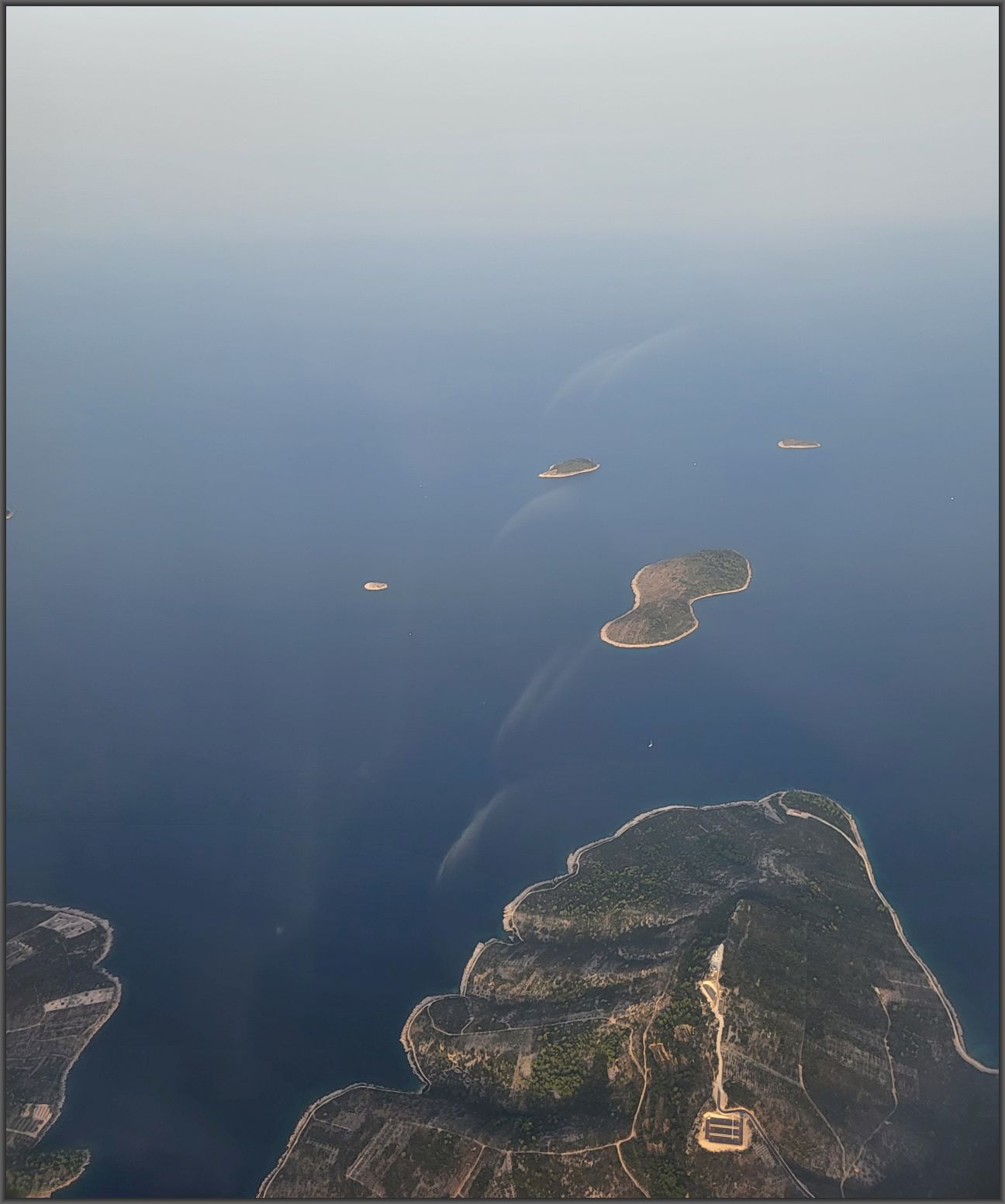 I już lecimy nad wyspą Ciovo. Ta długa wysepka sąsiadująca z wyspą Ciovo to Otocic Sveta Fumija.