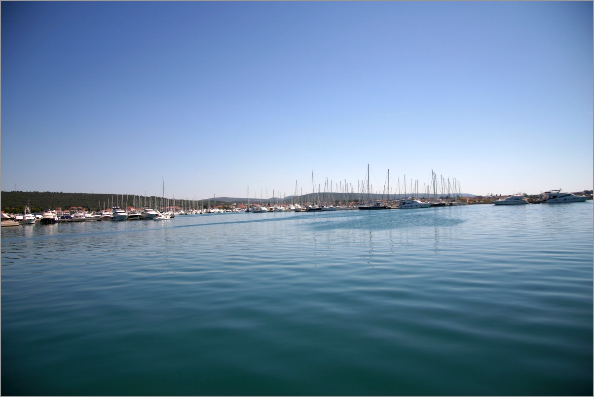 Wszystkie granice przejeżdżamy bez korków i zbędnej kontroli dokumentów. To urok jazdy u schyłku sezonu . Od granicy komfortowo, bo oddano w tym roku dalszą część autostrady. W tunelach płynnie, nie tak jak pod koniec sierpnia zeszłego roku. Do mariny w Sukošanie docieramy około 11:40.