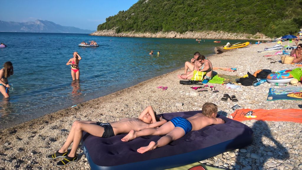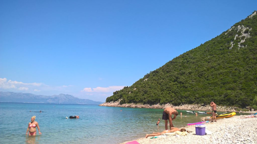 Divna 3 lipca 2016. Tłoku na plaży nie widać ale i tak trudno było zaparkować przy drodze. Plaża pustoszała w porze obiadowej. Po 15-stym lipca na pewno robi się gęściej.