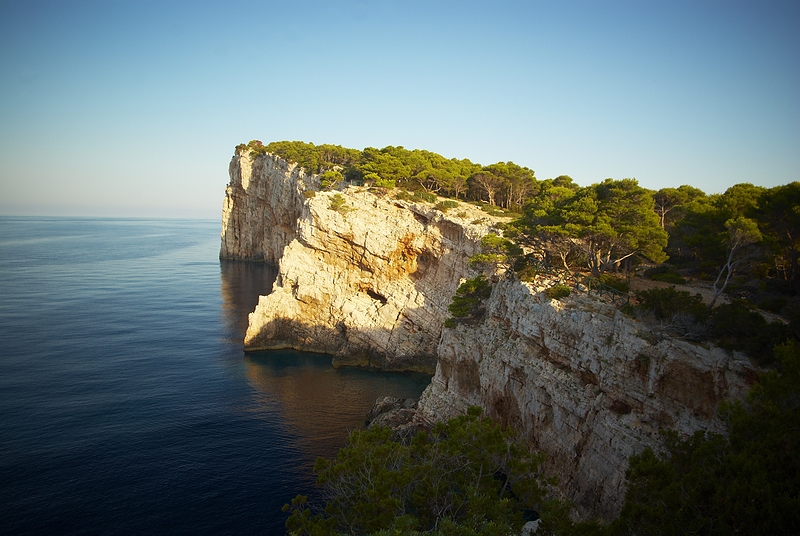 1. Park Telascica - czyli to z czego wyspa jest znana najbardziej (oprócz plaży Saharun). Park bardzo fajny, ładne klify, ciepłe jak zupa Jezioro Slano, w którym można się kąpać. Oczywiście warto się tam wybrać jak tłumy ze statków wycieczkowych odpłyną już do swoich portów. Będzie pusto. My właśnie dlatego byliśmy po godzinie 16. Około godziny 17 jezioro było tylko nasze. Pustka. Na jednych i drugich klifach byliśmy również sami. Wjazd 25Kn od osoby. Jezioro około 30min pieszo od parkingu, no chyba że bardzo szybkim tempem to tak jak piszą - 20min. Zatoczki może i są fajne, ale niestety zbyt popularne i ciężko tutaj znaleźć jakąś pustą, bo ktoś od strony morza pewnie do niej zawinie. Nieco mniejszy ruch jest oczywiście w północnej części (np zatoka Cuscica na zdjęciu)