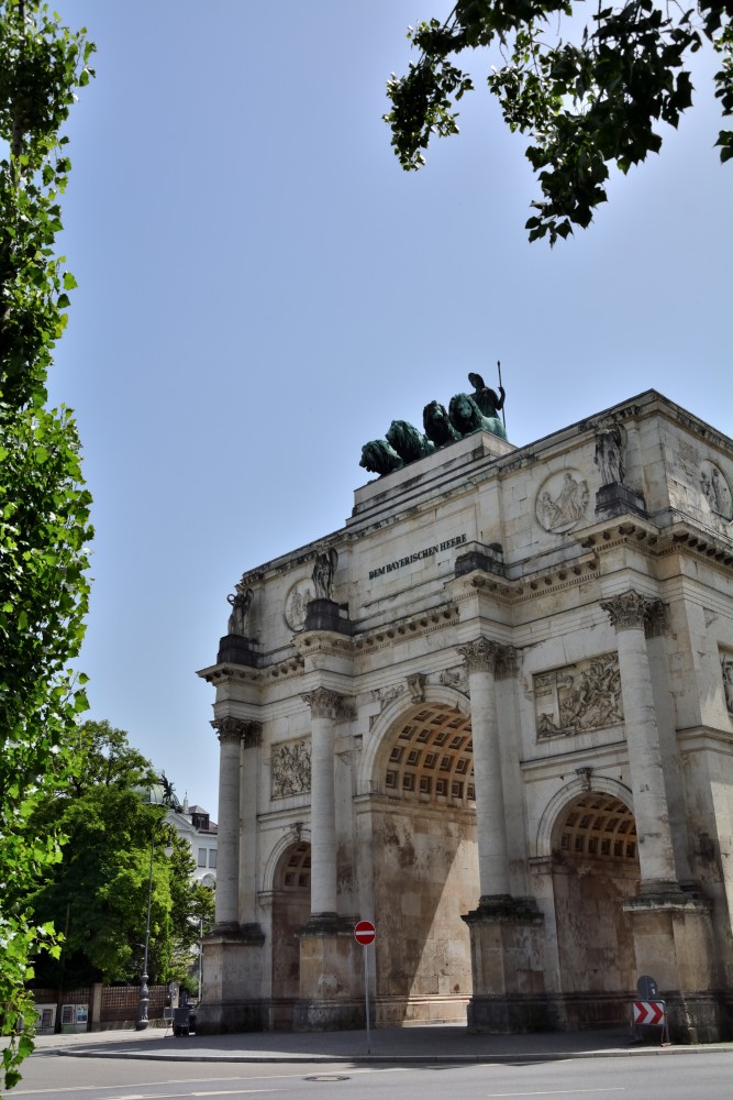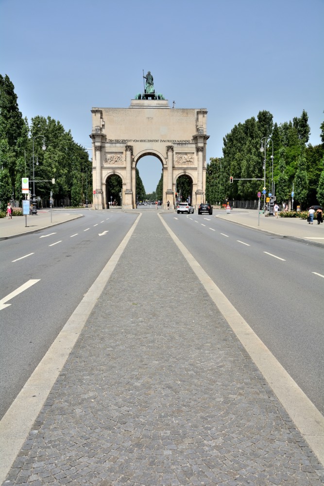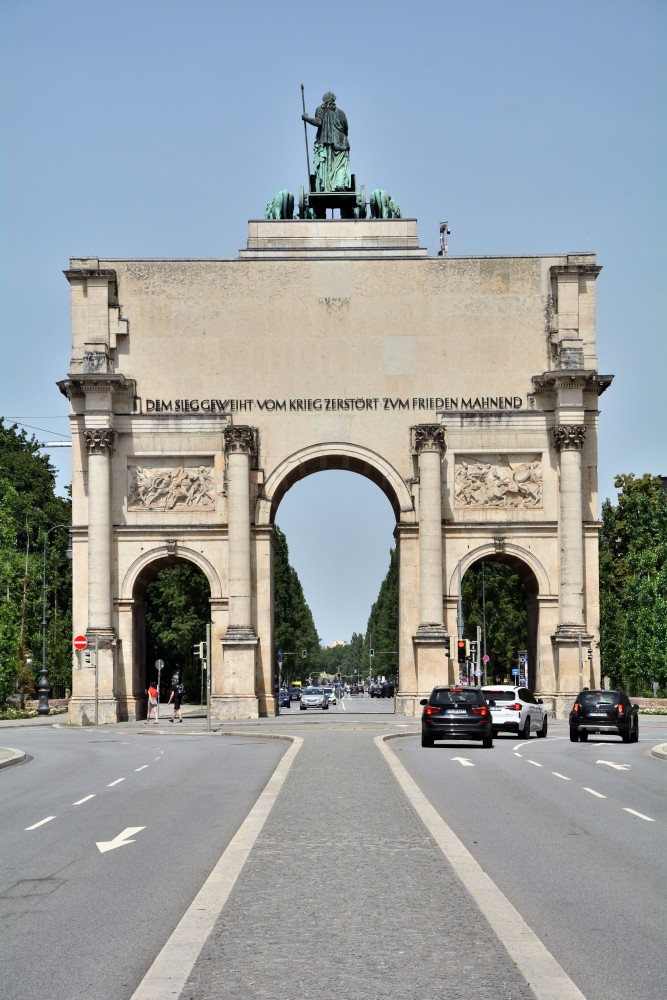 Kawałek dalej jest Siegestor - łuk triumfalny. Na nim napis "