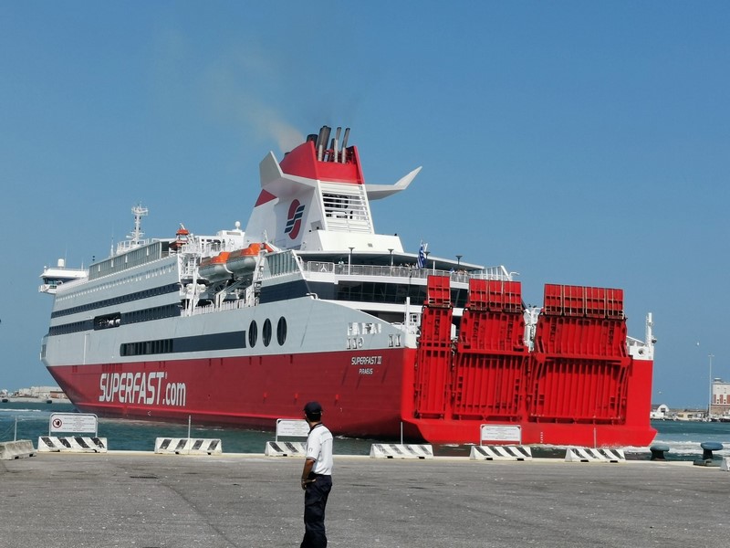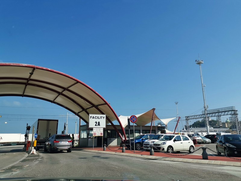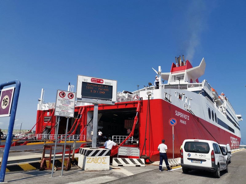 Okolice portu są dobrze oznakowane. Odprawę należało zrobić w biurze zlokalizowanym dosyć daleko od wody. Okazało się, że nie płyniemy Ankiem tylko siostrzanym Superfast. Ponieważ kod QR miał przyjść dopiero o północy, ważnym dokumentem okazał się wydrukowany email, potwierdzający zgłoszenie w greckim systemie. Bez tego wejście na prom było by niemożliwe. Natomiast deklarację zdrowotną można było dostać i wypełnić na miejscu.