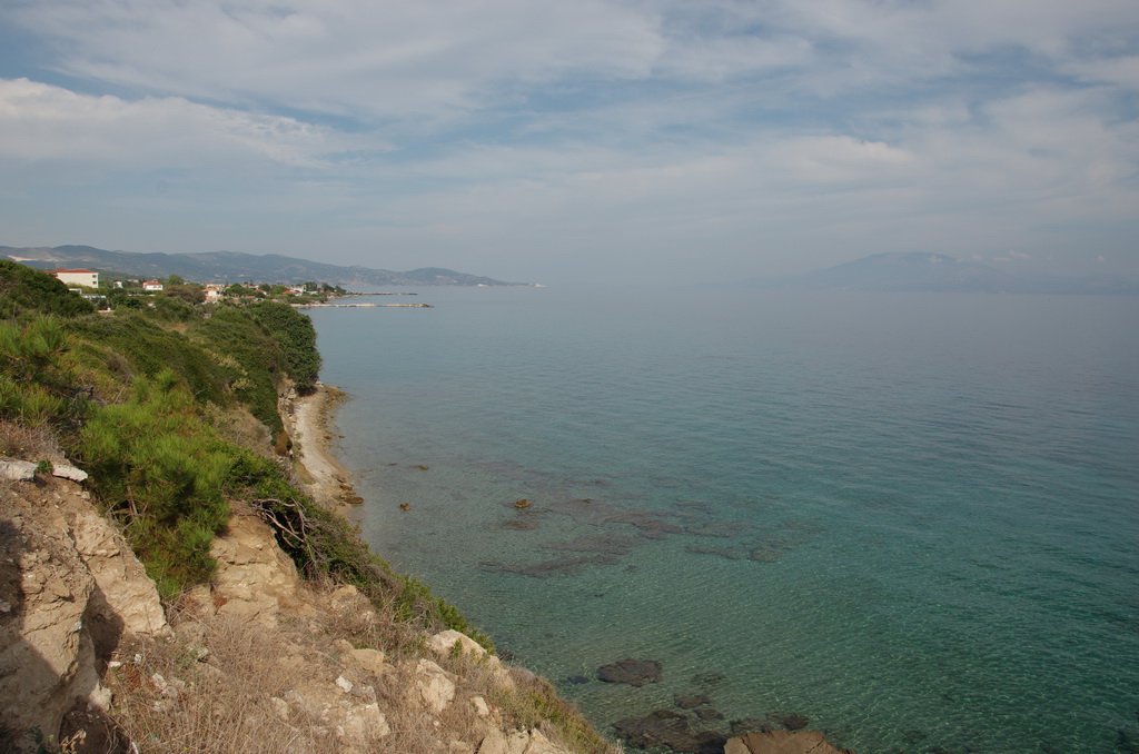 Zatrzymujemy się na chwilę w Alikes i korzystamy, póki możemy - niebo jest mocno zachmurzone, z tutejszego morza i piasku. Drogę powrotna prowadzi nadbrzeżem, mijamy więc Ksechoriatis