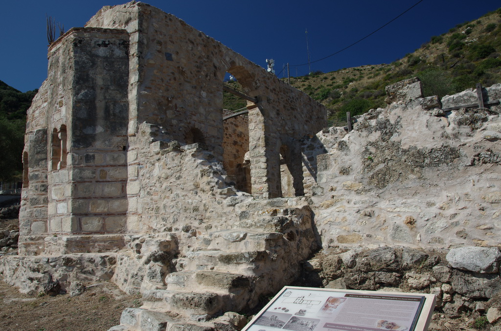 W drodze do Gerakari nie mogę nie zatrzymać się przy tutejszym Virgin Mary the Evangelistria - zbudowanym w 16 wieku i mocno uszkodzonym podczas trzęsienia ziemi w 1953. Opuszczony, zamknięty, pozostawiony jako pomnik.