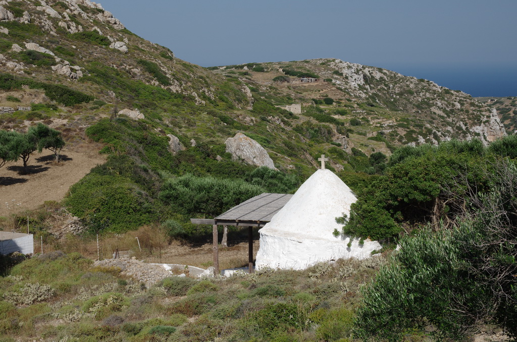 Pierwszy dzień testowania Pandy na szutrowych drogach Karpathos po śniadaniu ruszamy z Arkasy na małe zwiedzanie. Plan jest taki, żeby pierwsze dni poświęcić na jeżdżenie, a przy okazji przyzwyczaić się do słońca. No i znaleźć jakąś plażę na odpoczynek Zanim miniemy Menetes odbijam w małą, pozbawioną asfaltu drogę. Tu znajduje się 11 wieczny (z freskami pochodzącymi z 14w) Agios Mamas.