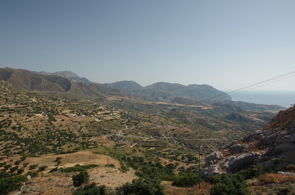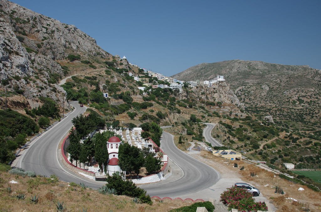 Niestety ruszyliśmy w powrotną drogę akurat wtedy, kiedy okoliczne beczkowozy dostarczały wodę dla strażaków. Droga dojazdowa została zablokowana, a my przez godzinę siedzieliśmy w aucie. Trochę pokrzyżowało to plany i trzeba było modyfikować wycieczkę. Mijając urocze Agios Leon postanowiłem dojechać tylko w jedno miejsce. Przed Exo Chora na południe, mijając Kambi...