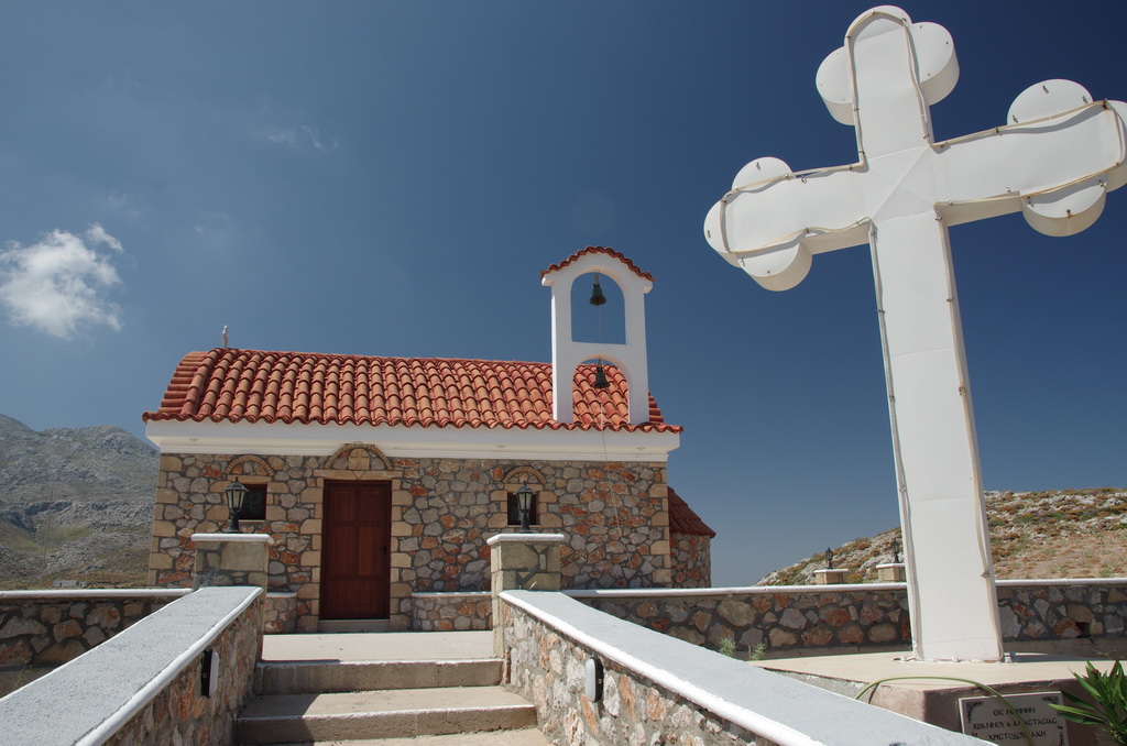 Docierając do Lastos, w którym kończy się droga, najpierw odwiedzamy tutejszy Monastyr