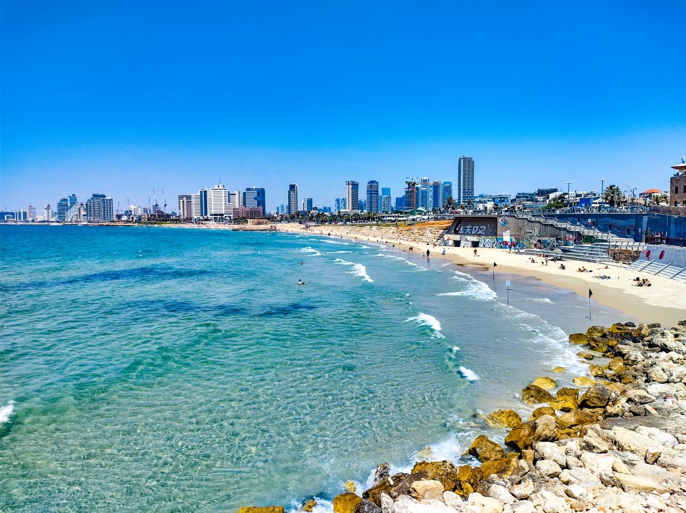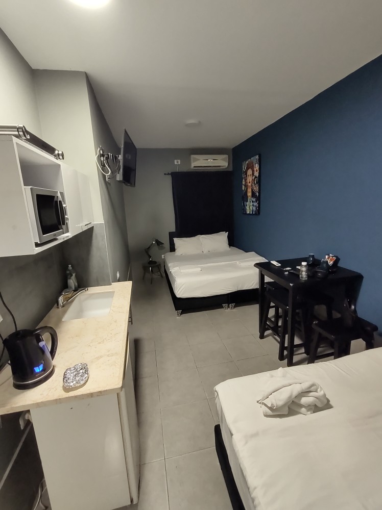 Droga trwa około 30 minut, wysiadamy na przystanku Dizengoff i mamy do hotelu jakieś 20 min na pieszo. Miasto tętni, idziemy już dobrze po 22 a ruch jest ogromny. Pełno ludzi na ulicach, tłumy w wszechobecnych knajpkach, pełno różnych zapachów ... Masa hulajnóg elektrycznych, bardzo dużo dostawców jedzenia na rowerach elektrycznych. Na ulicach tłok, samochody zderzak w zderzak, trąbią ... Tygiel