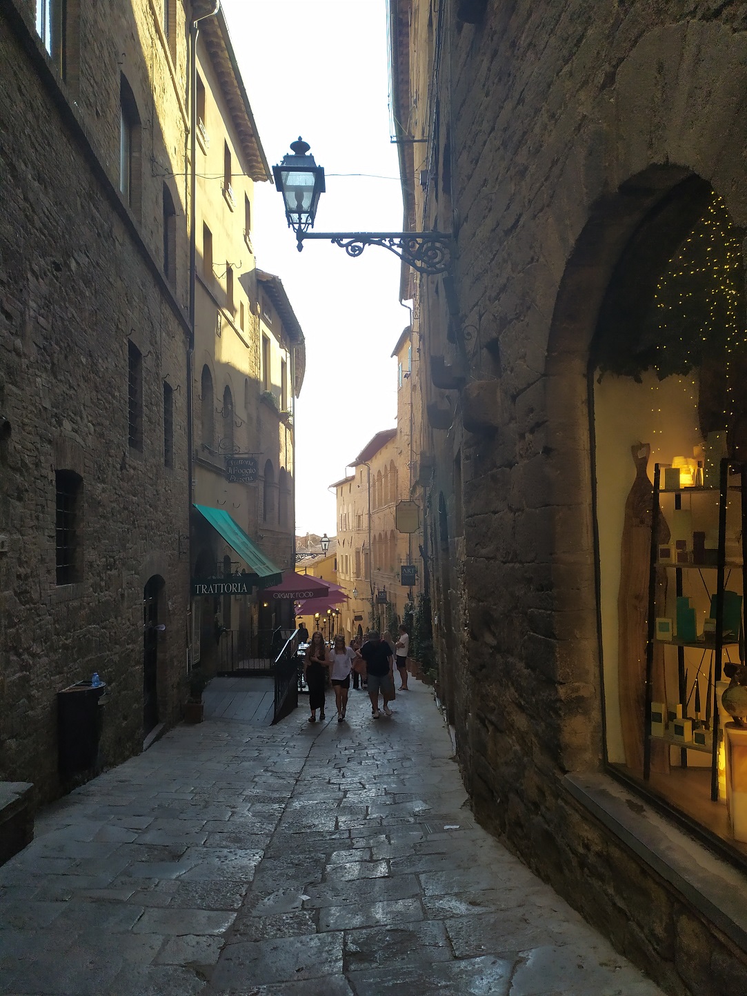 Kolejnym miejscem, które postanowiliśmy odsiedzieć w okolicy Montescudaio było nieduże miasteczko Volterra. Kiedyś słynęło ono z wydobycia soli i alabastru co widać po wystawach i kramikach podczas spaceru uliczkami tego miejsca. Miasto również zasłynęło z filmu hollywoodzkiego pt. "Zmierzch". Niestety, ponoć miasto nie wyraziło zgody na nagrywanie i sceny z Volterry kręcili w innym włoskim miasteczku- Montepulciano.