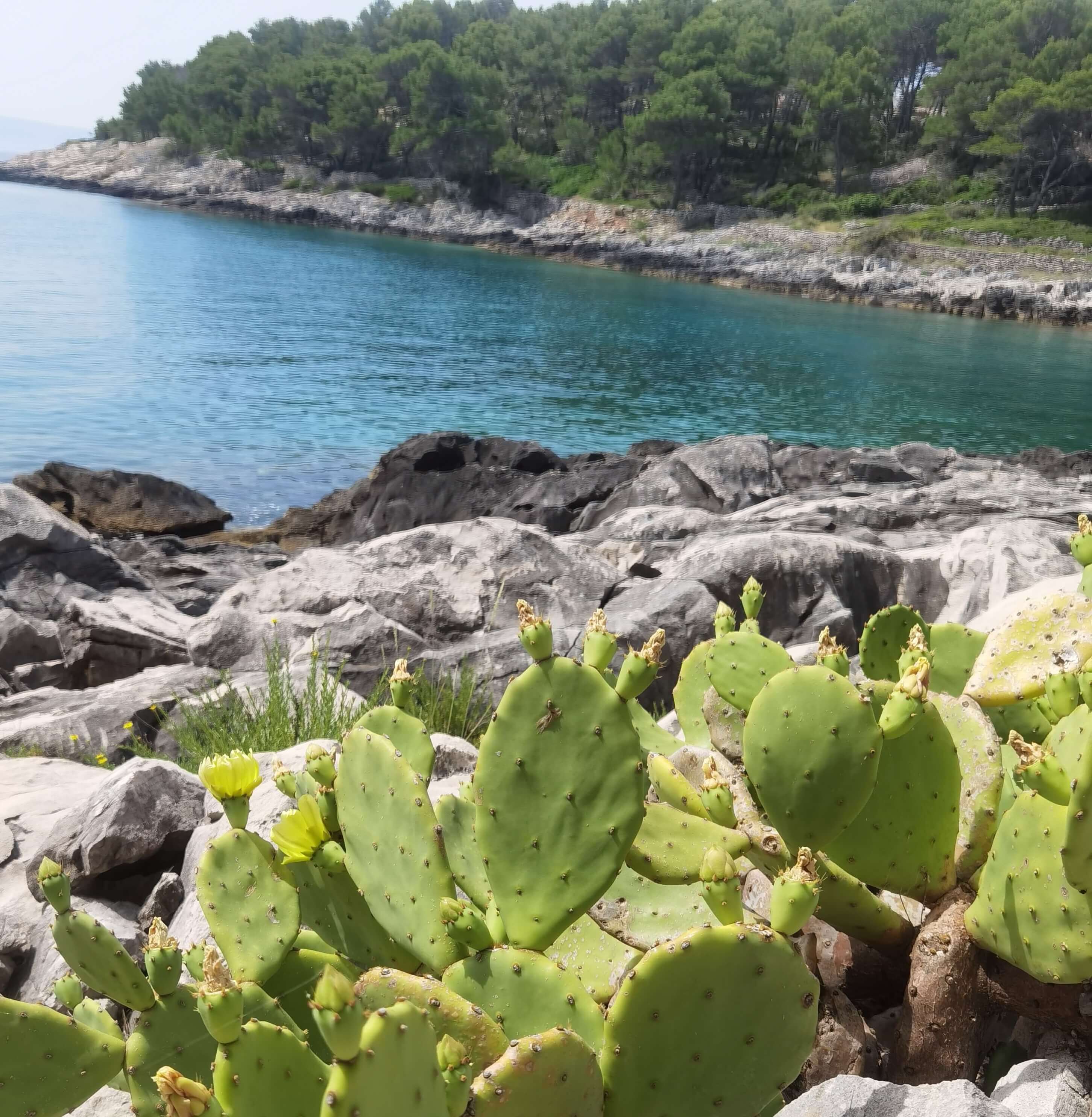 Nigdy nie udało mi się kupić dorady albo brancila. Chyba był sezon na morszczuki. Po śniadaniu pakujemy się do auta i ruszamy na ponoć najbardziej dziką plażę w okolicy, czyli Punticę Droga szutrowa, wąska, na 1 auto, kamyki strzelają spod kół, zjazd na parking dość stromy, więc namawiam męża, żeby zostawić auto przy drodze:) Bierzemy rzeczy i schodzimy na plażę... Widoki piękne, woda cieplutka, kamyki duże nie kłują w stopy, można pływać bez butów