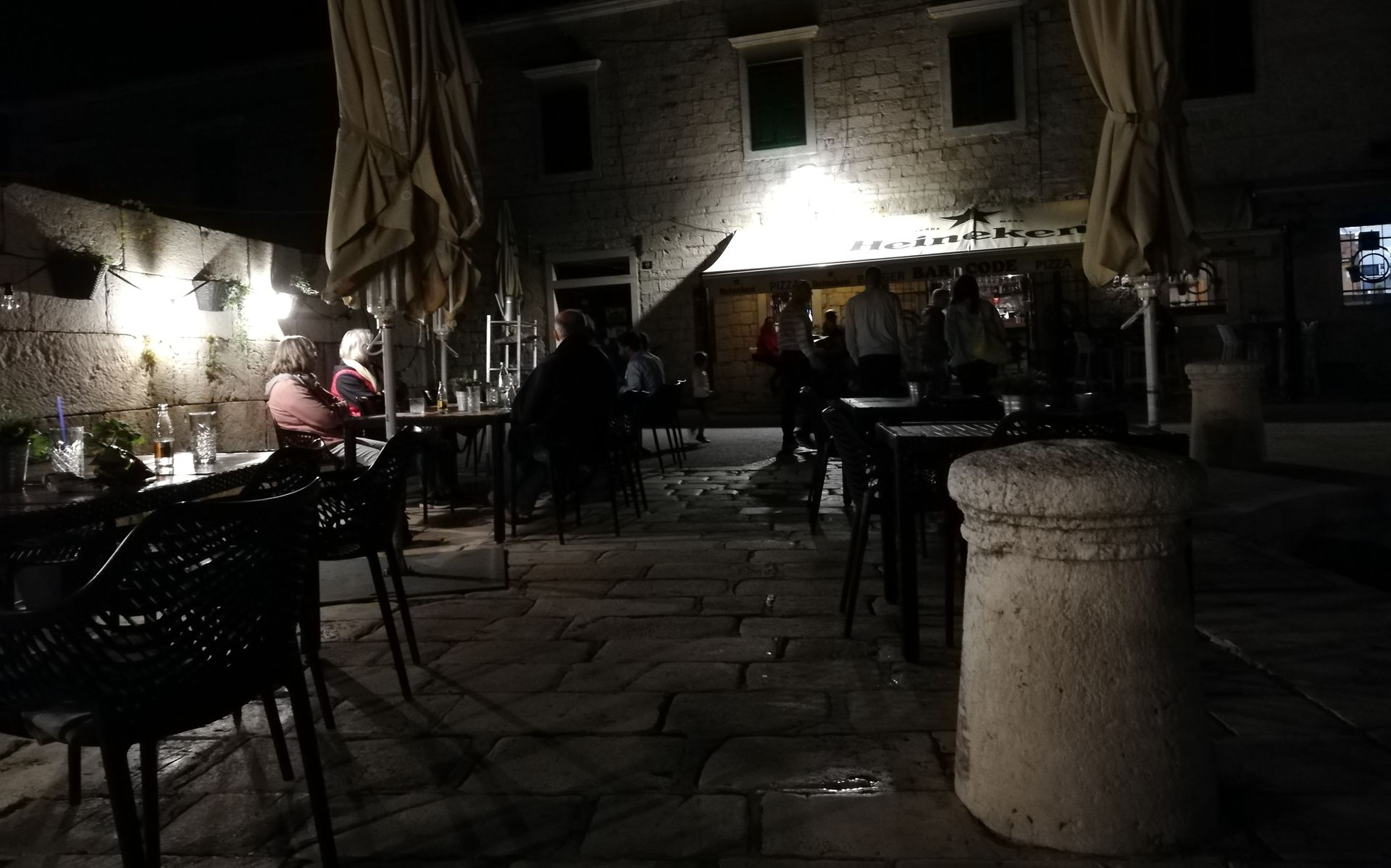 Takie widoki wystarczyły aby zakupu dokonać ale „spanie” było chyba za krótkie, bo jedynie 10 % utargowałem… Dieta Na kolację były tylko napoje w naszym już stałym punkcie obserwacyjnym czyli w Pizza&Burger bar BARCODE. Skoro zostało mi 39 kun z zakupów... To wystarczyło na napitki i jeszcze kuna napiwku. Żartuję. Dołożyłem do 45, a co. Trzeba mieć gest