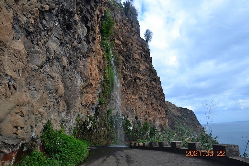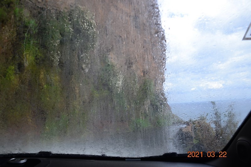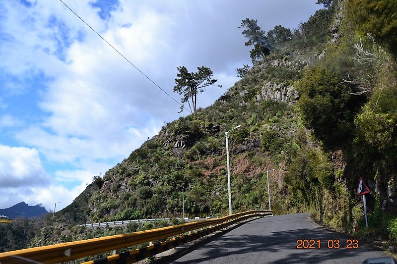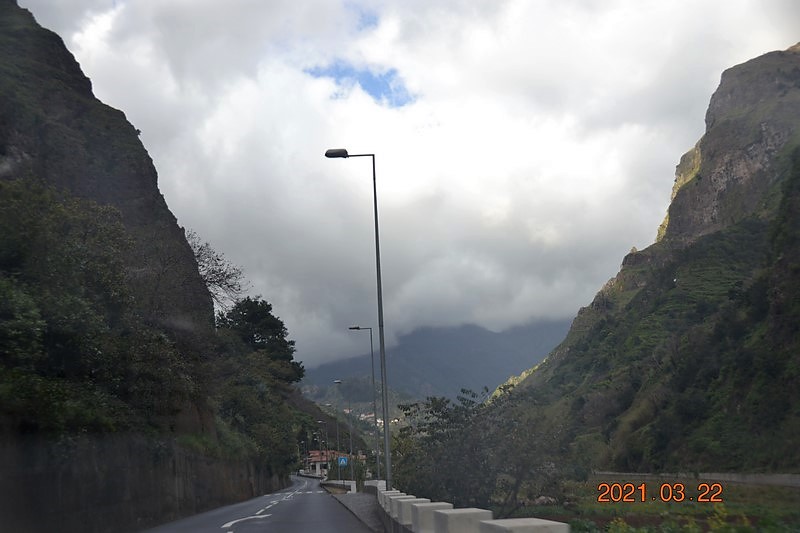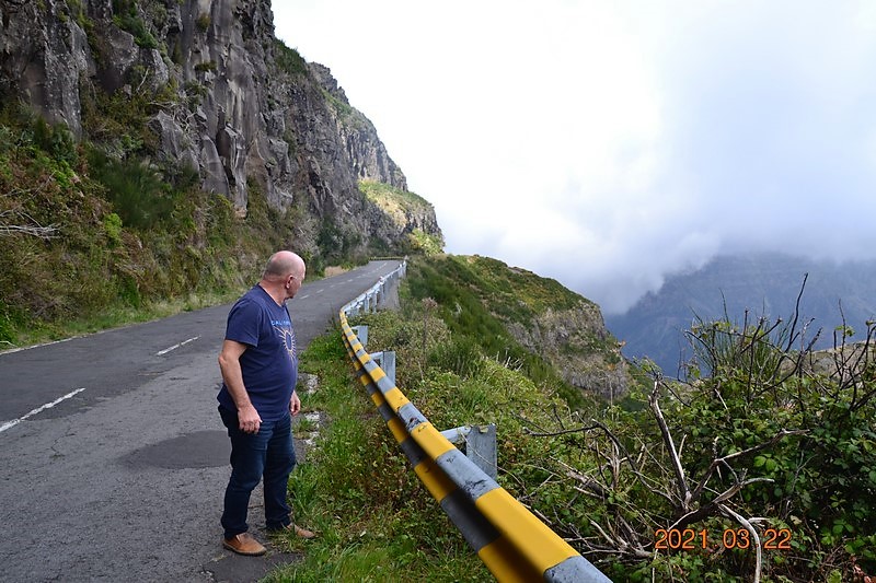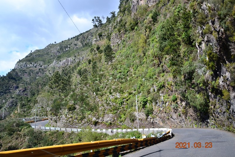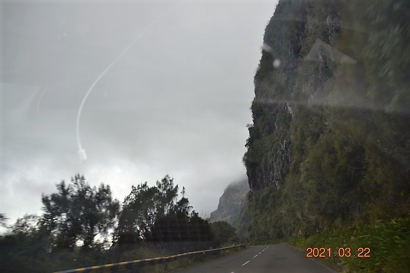 Dzisiaj pojedziemy w przeciwnym kierunku, wybrzeżem zachodnim na południe. Droga ER101 od Porto Moniz to stary odcinek, który pnie się bardzo stromo pod górę. Nachylenie trzydzieści kilka procent na maderskich drogach to norma. Na tej górze przeważnie była zaczepiona ciemna ciężka chmura, w którą trzeba było wjechać.