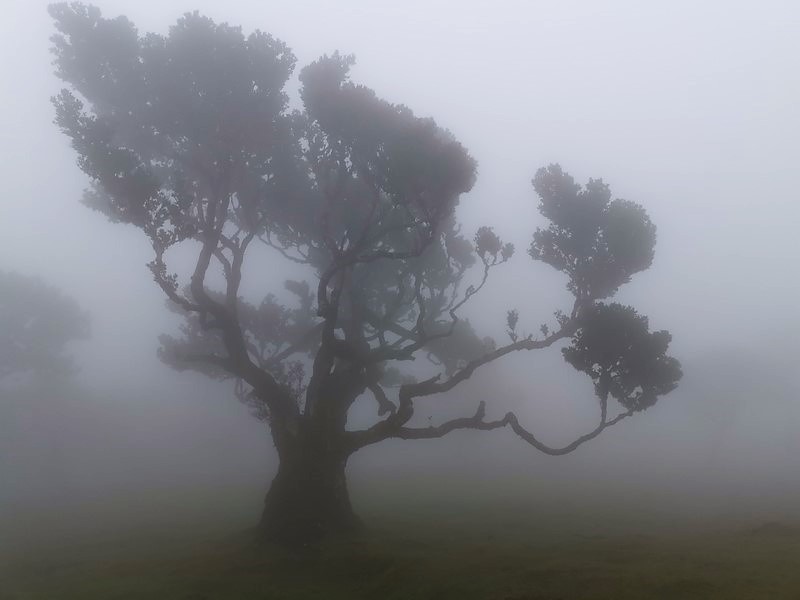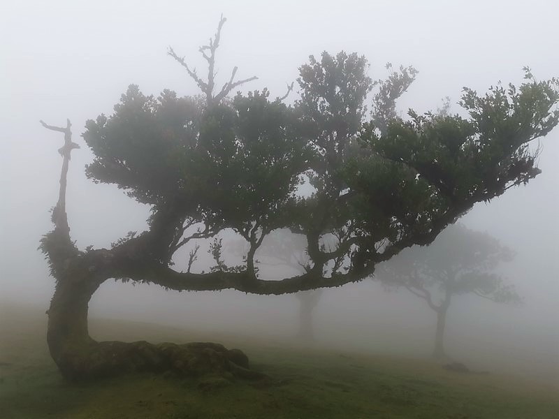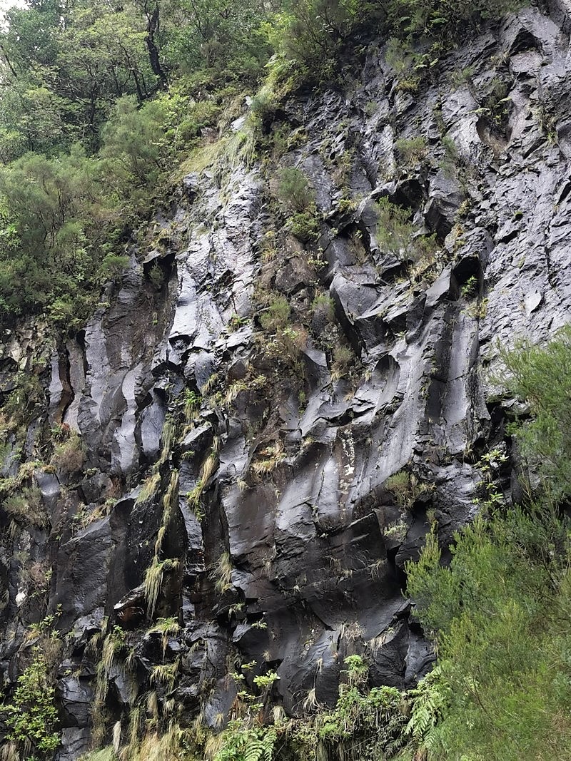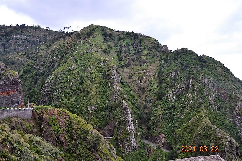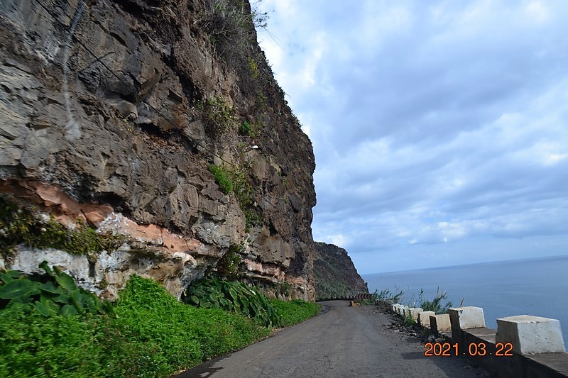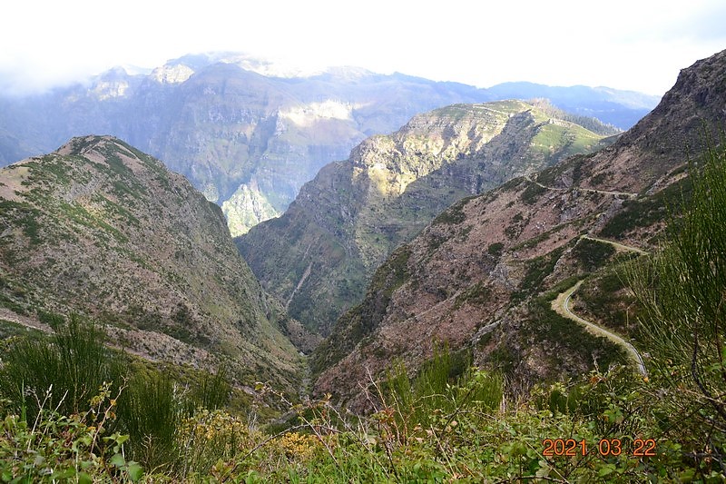 Dzisiaj pojedziemy w przeciwnym kierunku, wybrzeżem zachodnim na południe. Droga ER101 od Porto Moniz to stary odcinek, który pnie się bardzo stromo pod górę. Nachylenie trzydzieści kilka procent na maderskich drogach to norma. Na tej górze przeważnie była zaczepiona ciemna ciężka chmura, w którą trzeba było wjechać.