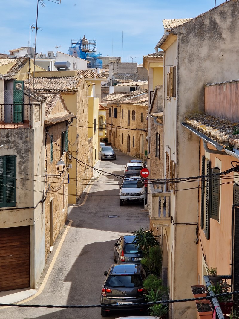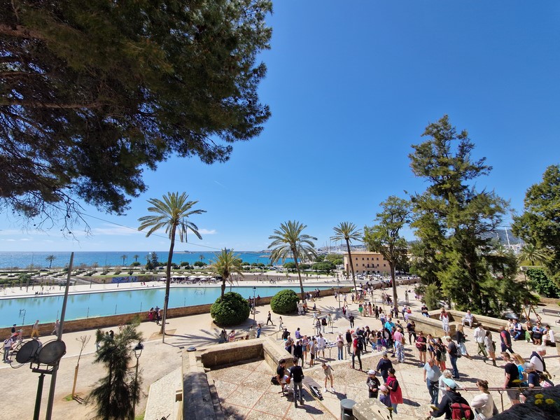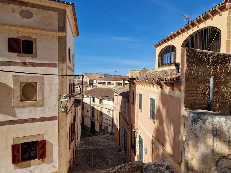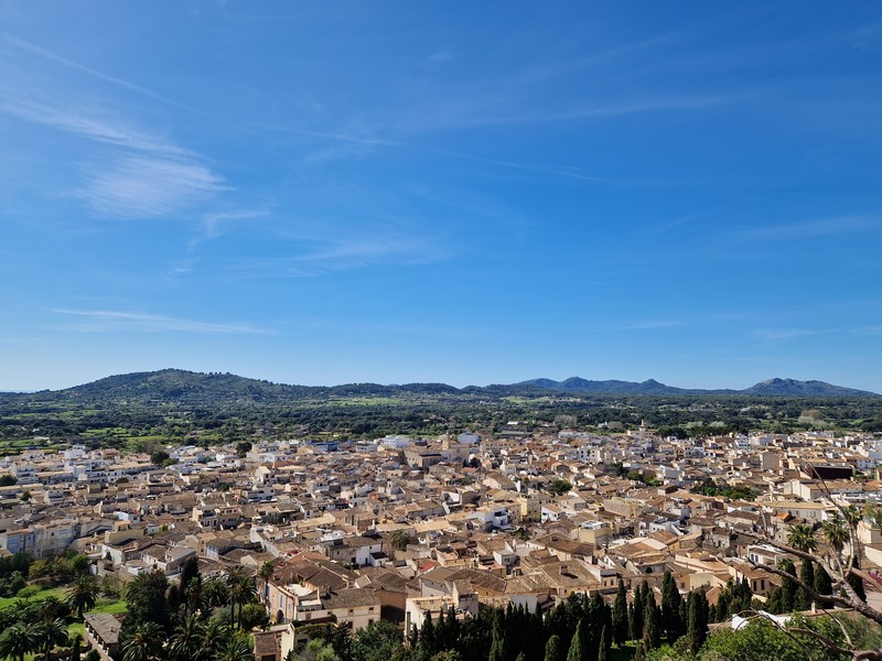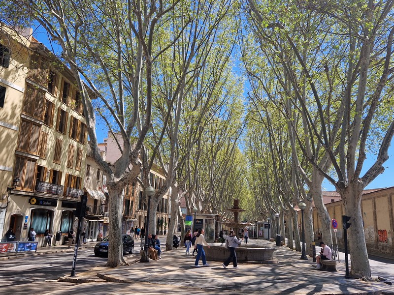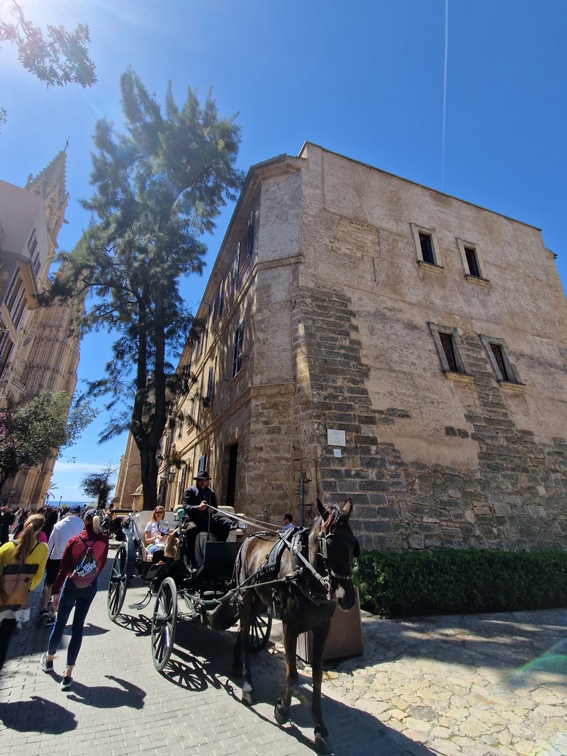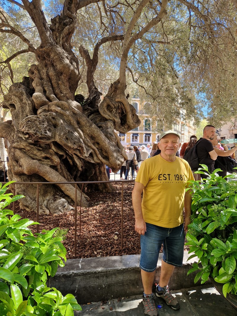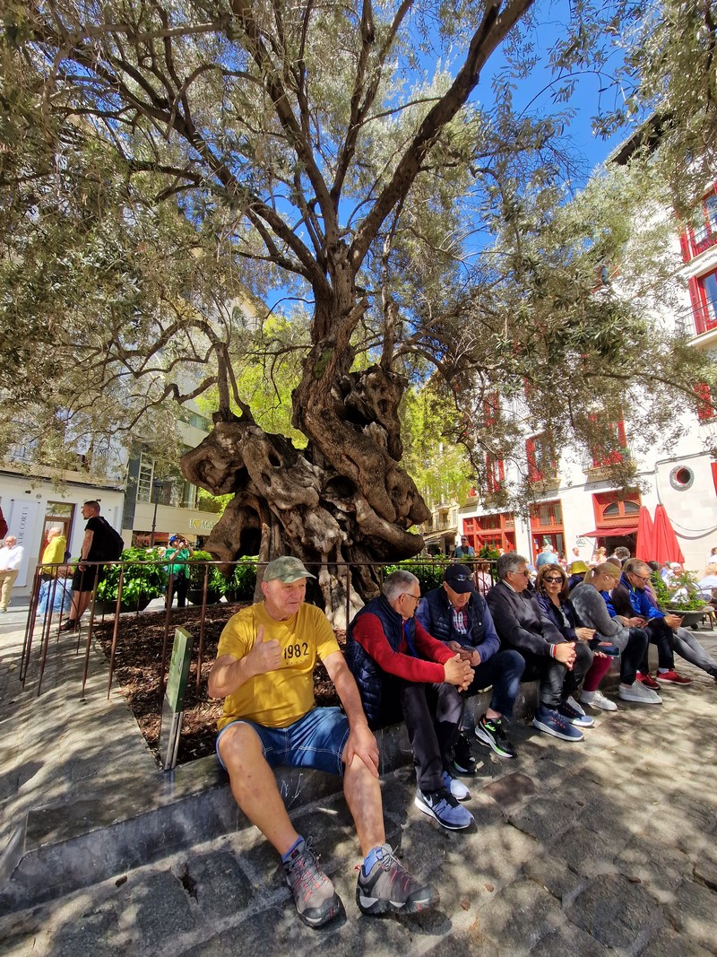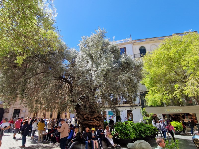Kilkusetletnie drzewo oliwne na Placa de Cort. Z tyłu ratusz miejski.