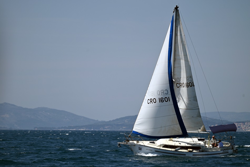 Natychmiast za główkami portu w Rogać stawiamy żagle.