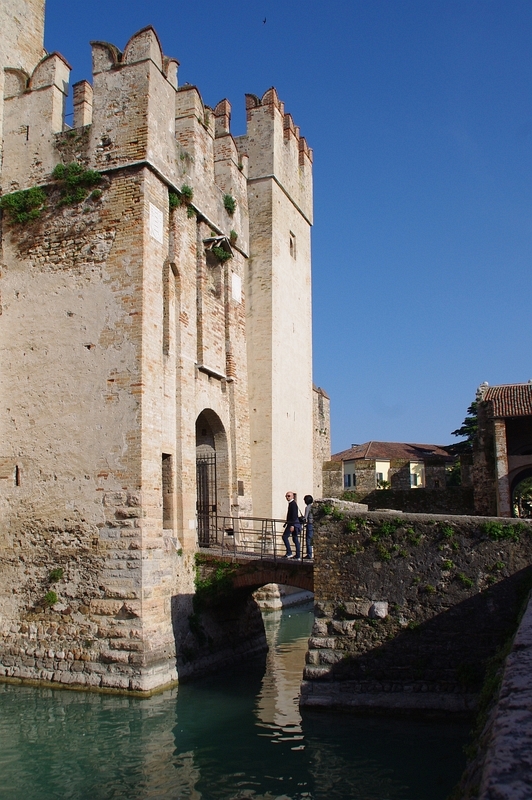 Taki widok można zastać przed wejściem., Ten zamek to największa atrakcja Sirmione, wybudowana w XIII w. na rzymskich fundamentach, oblana dookoła wodą siedziba rodu Scaligierich.