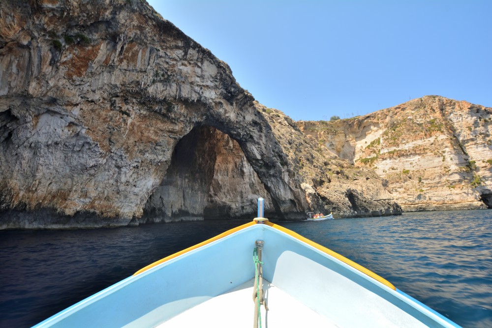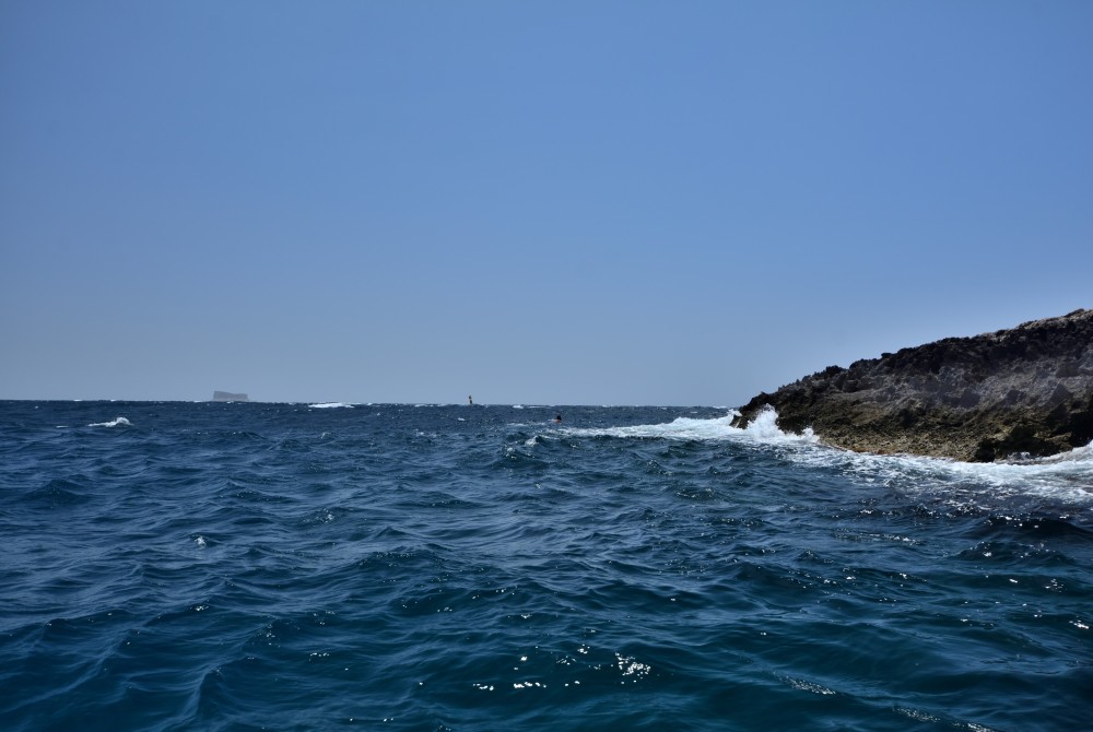 Powoli zataczamy koło i zawracamy w kierunku przystani, płyniemy teraz centralnie pod falę, łódką rzuca to w górę, to w dół, woda pryska na boki. Jest super