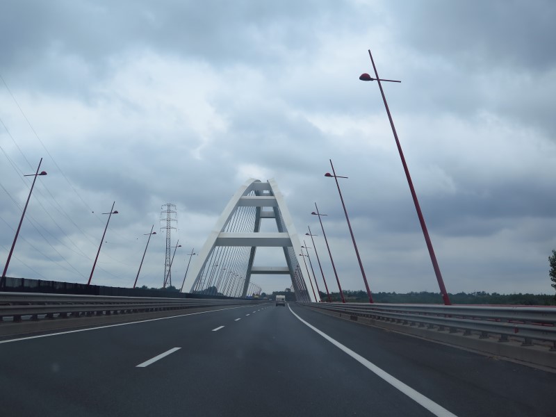 Przejeżdżamy przez ciekawy architektonicznie most na Dunaju: