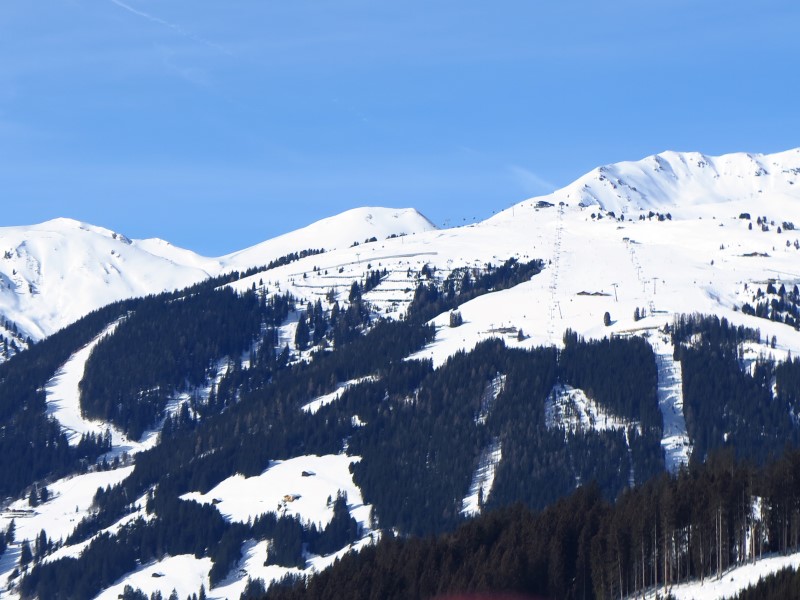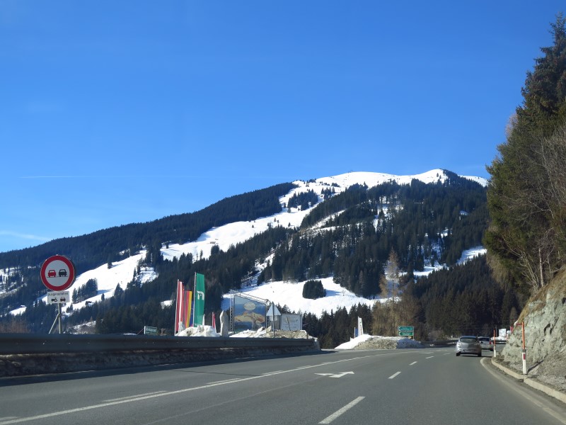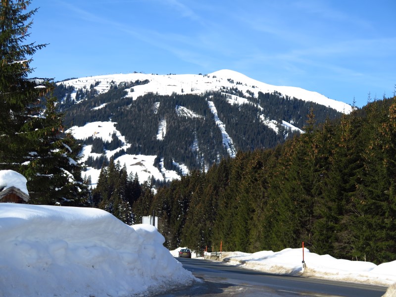Później mijamy ośrodek Wildkogel, w którym szusowaliśmy w zeszłym roku i zaczynamy podjeżdżać w stronę naszego (chyba) ulubionego ośrodka w całych Alpach - Kitzbühela. Tu już widać jego stoki, te po salzburskiej stronie: