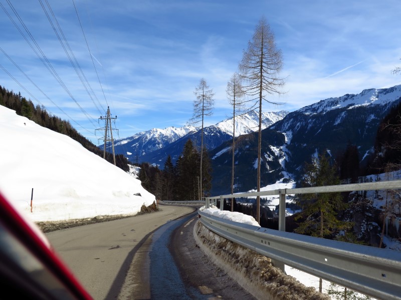 16 lutego (sobota): Pożegnanie z Alpami i podsumowanieJedziemy bardzo wąską drogą z licznymi zakrętami. Widać, ile śniegu spadło tu ostatnio
