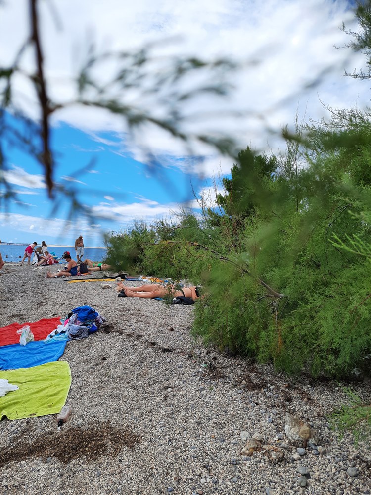 O ile północna Dalmacja pozostała w chmurach a nawet deszczu jeszcze długo, w Rogoznicy zrobiło się ciepło i słonecznie jak tylko przyjechaliśmy. Trzeba było się już trochę pakować, ale i tak zdążyłam po południu pójść na najbliższą – płytową plażę.