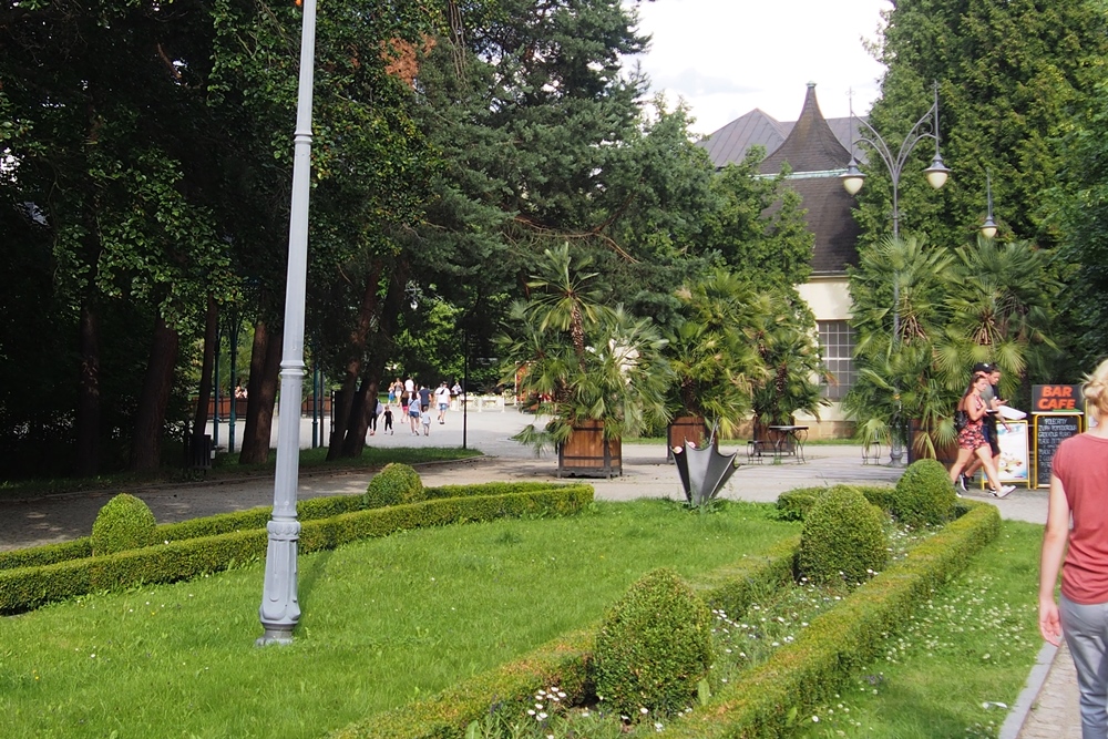 Wracamy już trochę spokojniejszym krokiem. Jesteśmy z powrotem w głównej części Parku Zdrojowego. Jest tu całkiem ładnie, te palmy , piękne budynki.
