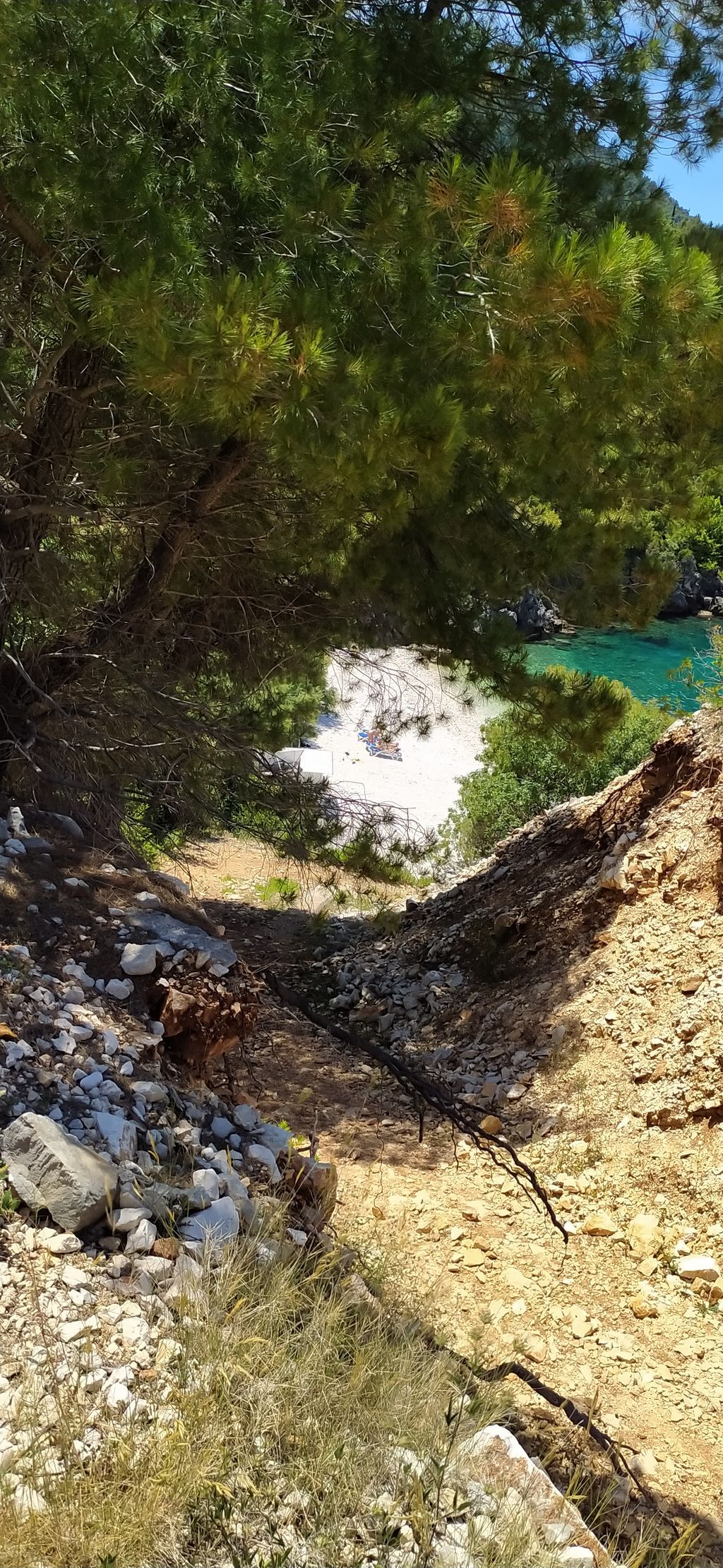 Droga do plaży jest pięknie obrośnięta, ale ostro w dół, kręta, po kamyczkach – polecam dobre buty